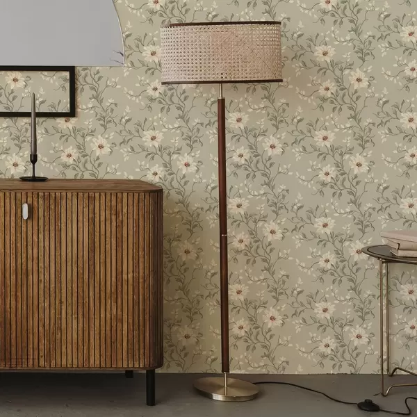Papel de parede Flores brancas com folhas ondulantes sobre fundo claro Nr. a00001v1