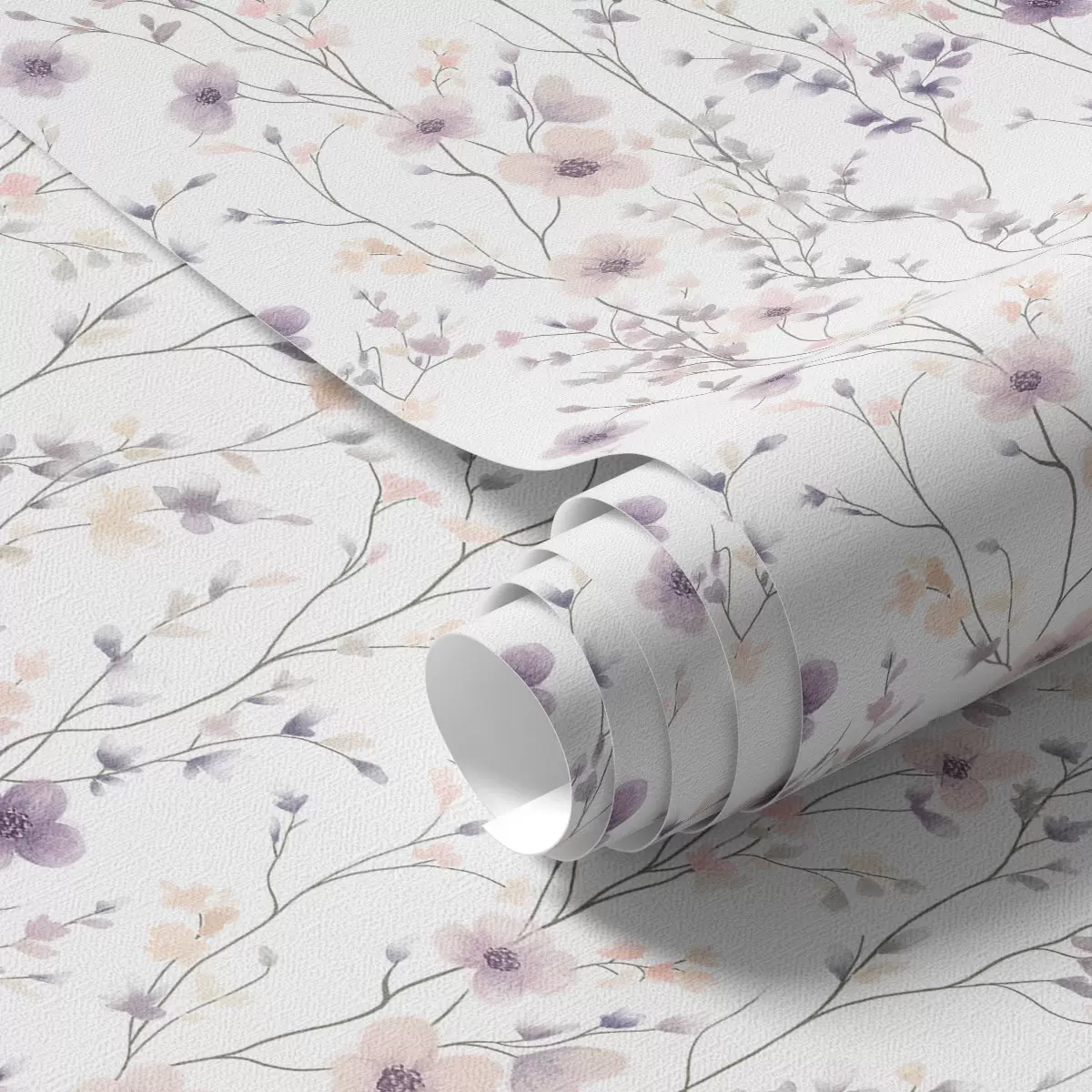 Papel de parede Pequenas flores silvestres com caules finos num fundo claro Nr. a00003