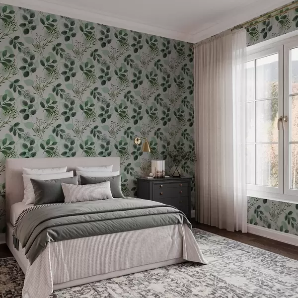 Papel de parede Folhas de outono em estilo aguarela em tons de verde Nr. a00048v1