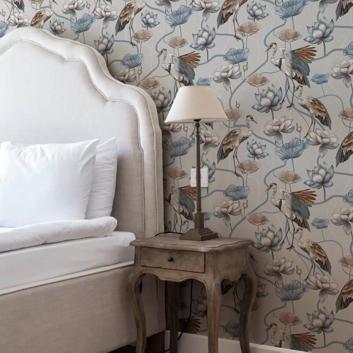 Papel de parede Composição com grous e lótus em tons pastel Nr. a00064