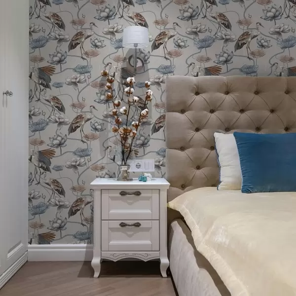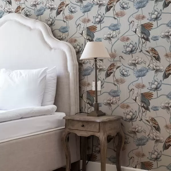 Papel de parede Composição com grous e lótus em tons pastel Nr. a00064