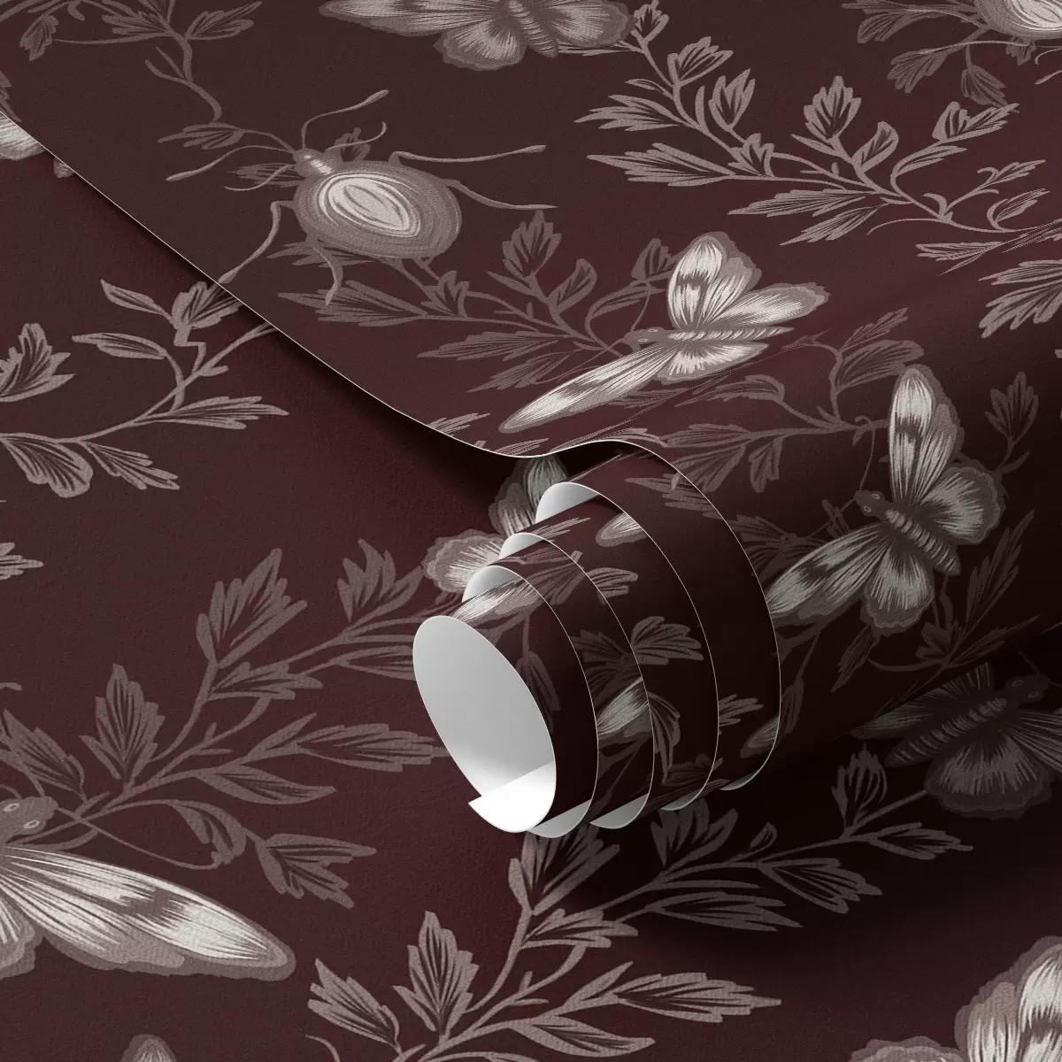 Papel de parede Composição com borboletas, folhas e insectos sobre fundo escuro Nr. a00073v1
