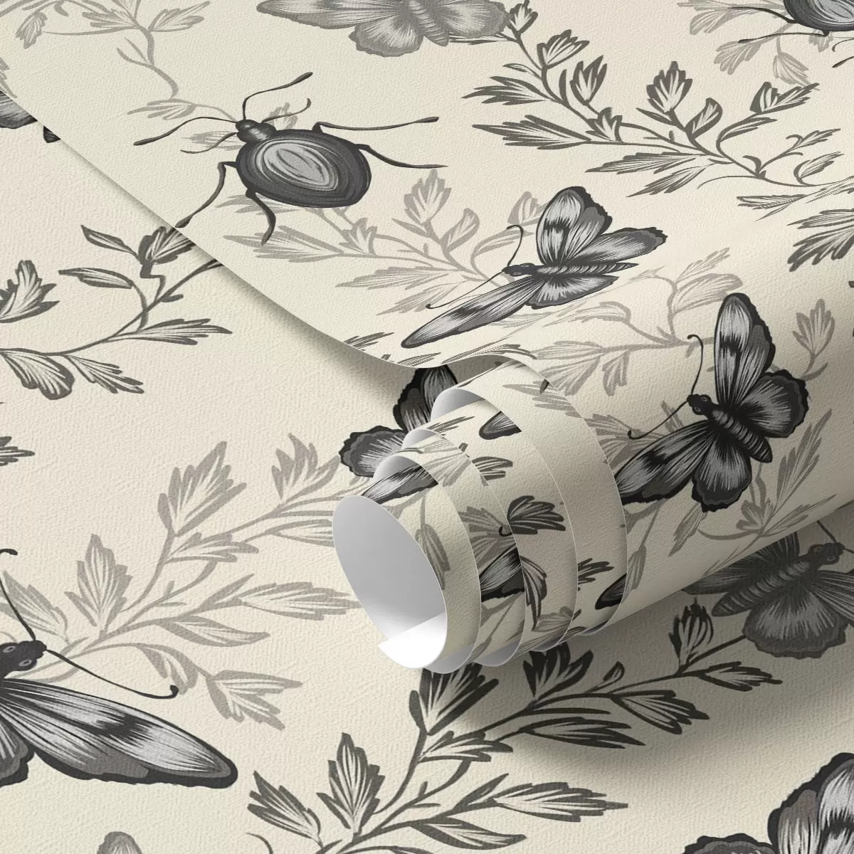 Papel de parede Composição com borboletas, folhas e insectos sobre um fundo claro Nr. a00073v2
