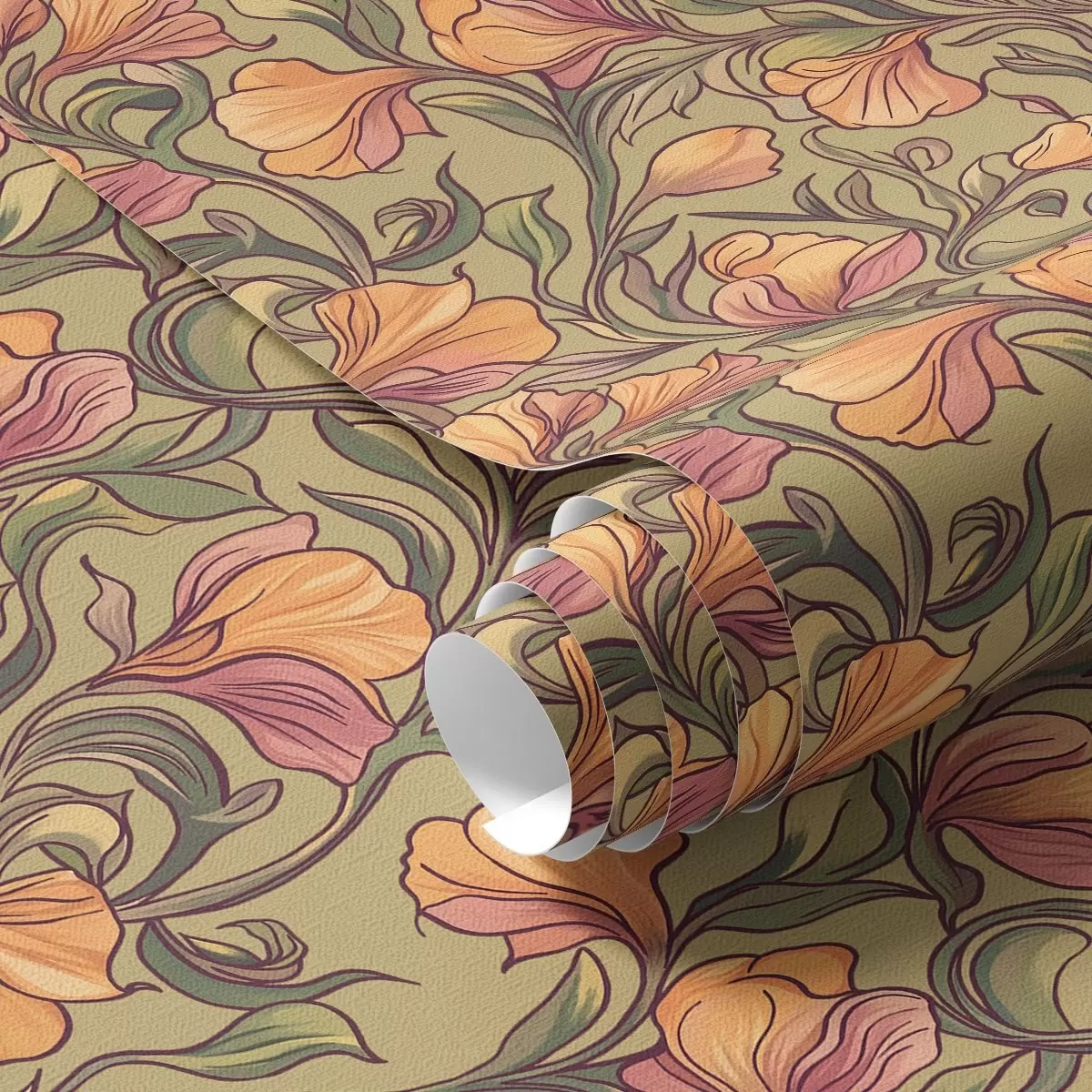 Papel de parede Caules brilhantes e retorcidos com folhas e flores Nr. a00074