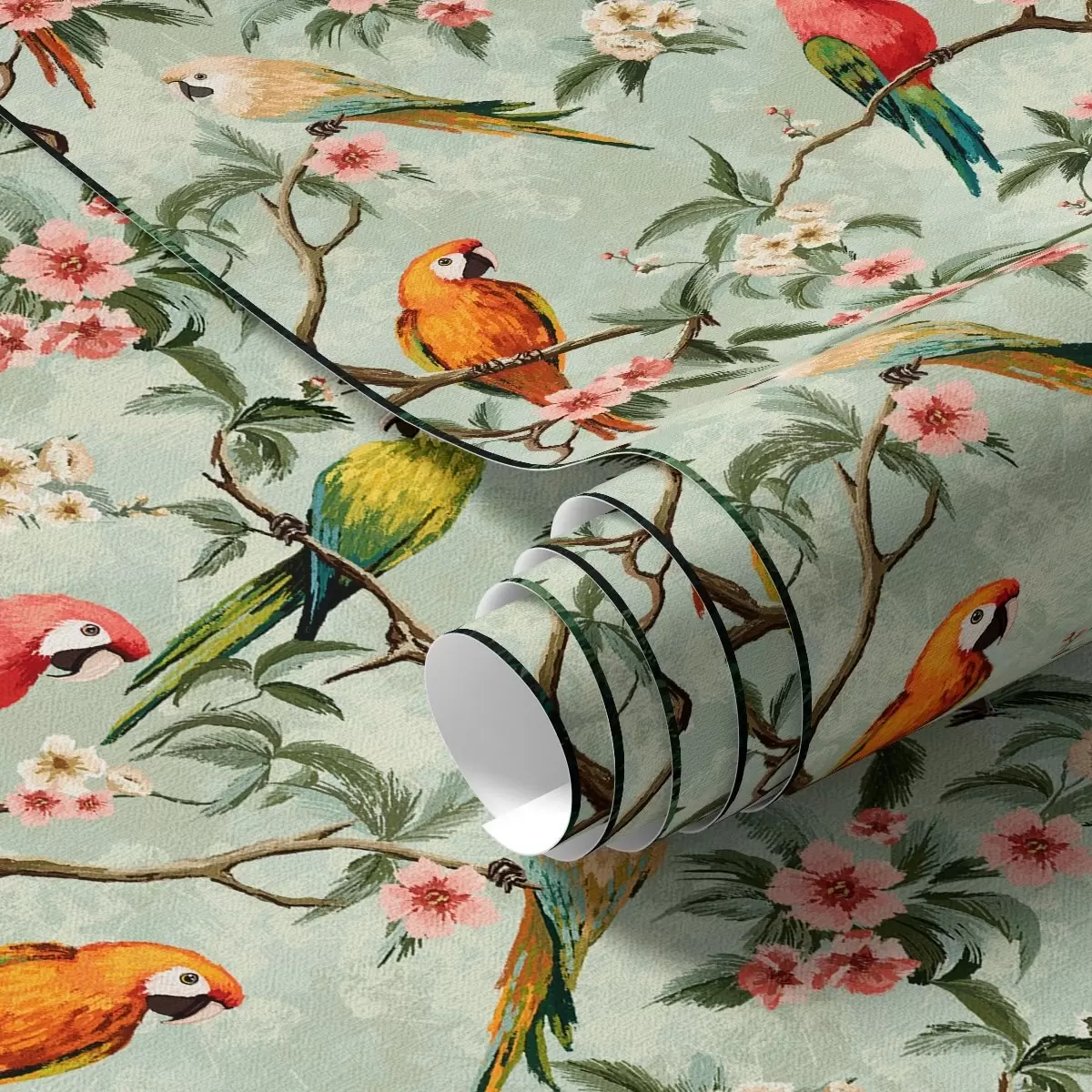 Papel de parede Papagaios multicoloridos em ramos Nr. a00088