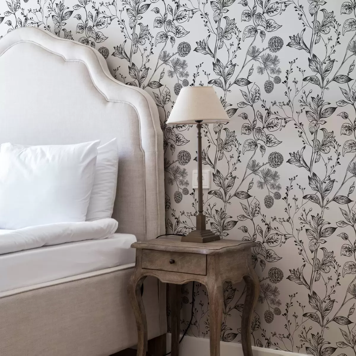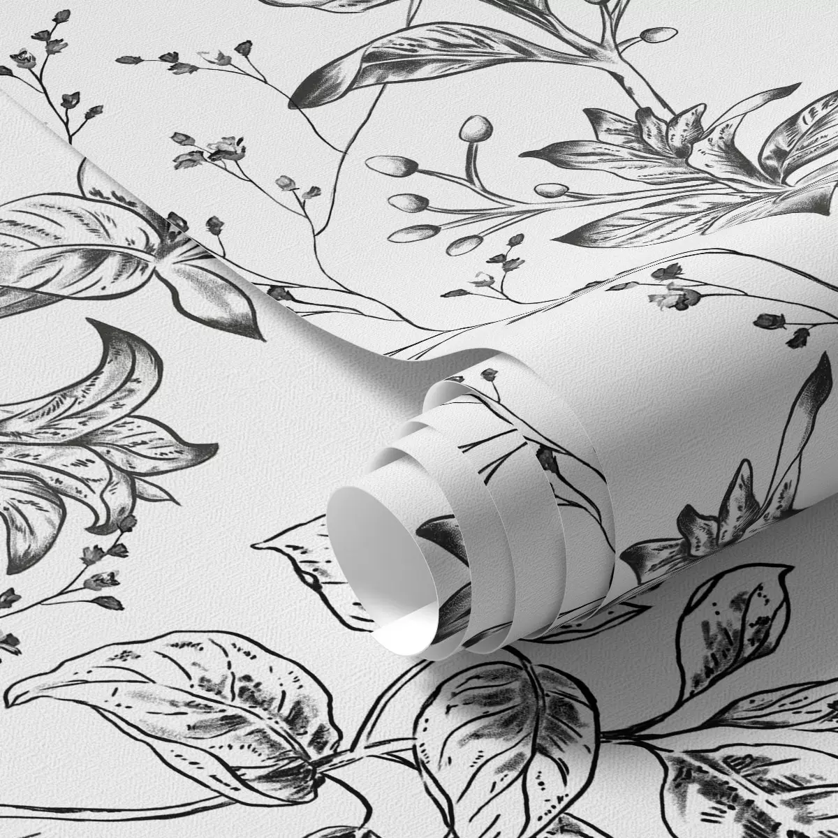 Papel de parede Ramos a preto e branco com folhas sobre fundo branco Nr. a00098v1