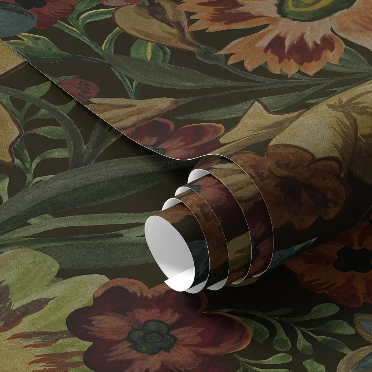 Papel de parede Flores e folhas escuras sobre fundo escuro Nr. a00100