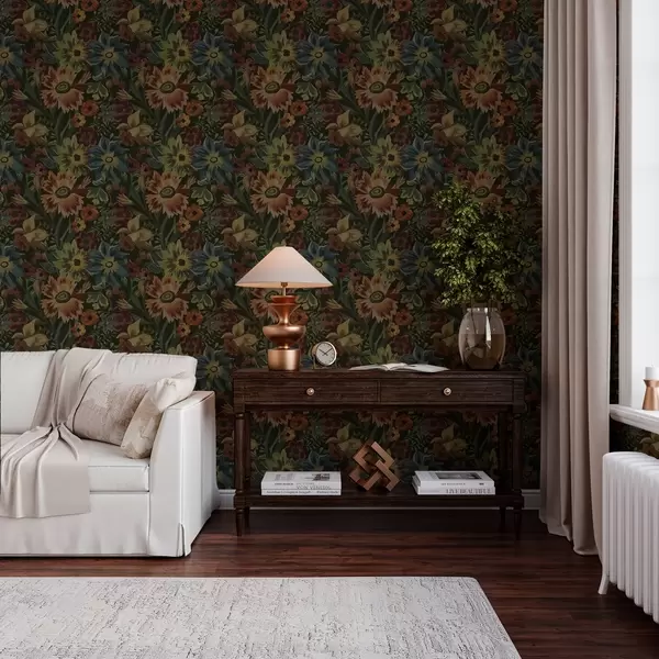 Papel de parede Flores e folhas escuras sobre fundo escuro Nr. a00100