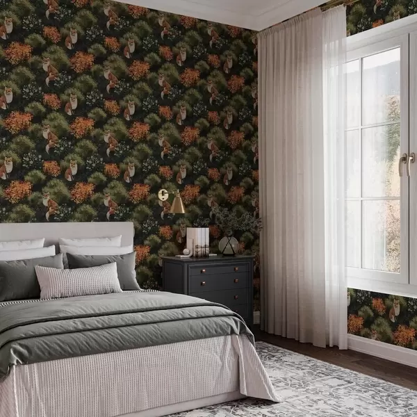 Papel de parede Cantarelos na floresta com arbustos de outono sobre um fundo escuro Nr. a00101