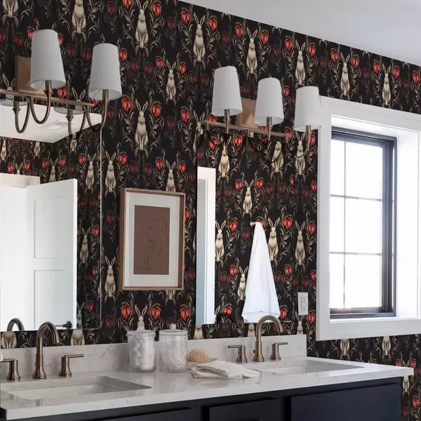 Papel de parede Lebre e flores vermelhas sobre um fundo escuro a00102