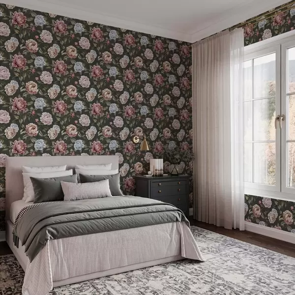 Papel de parede Peónias sobre um fundo verde escuro Nr. a00106