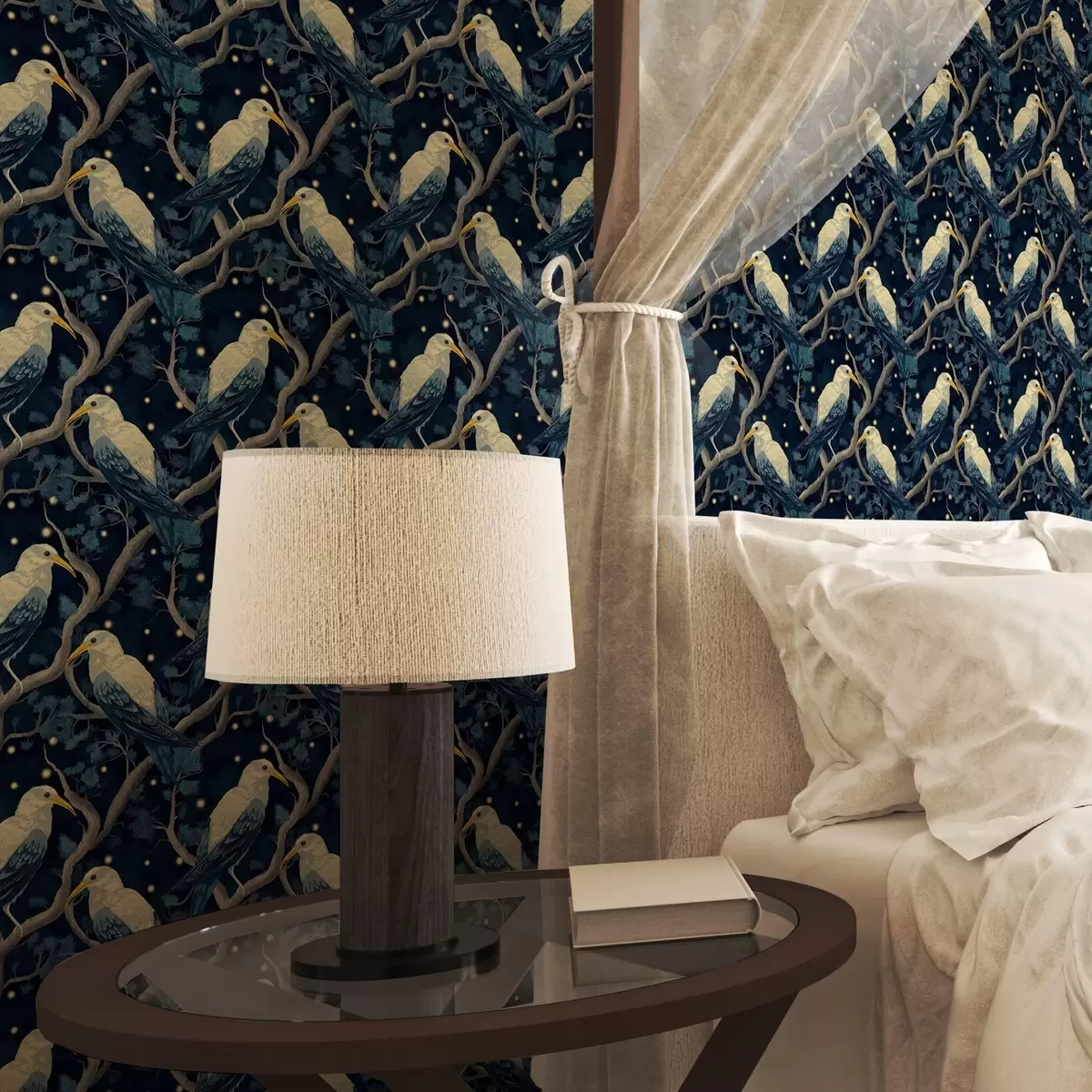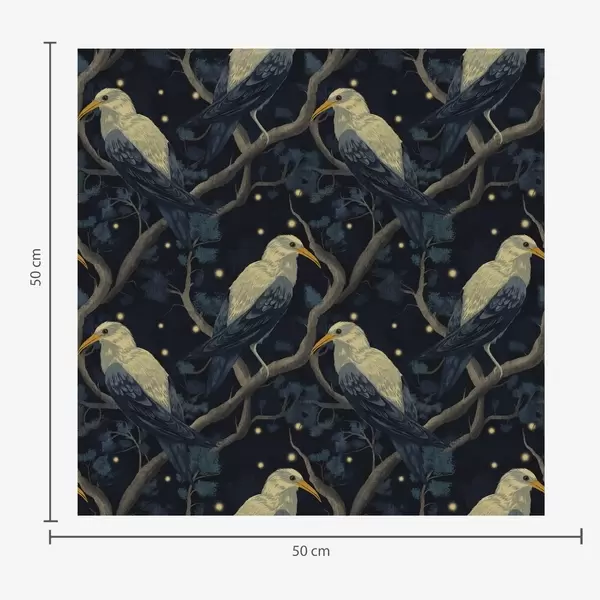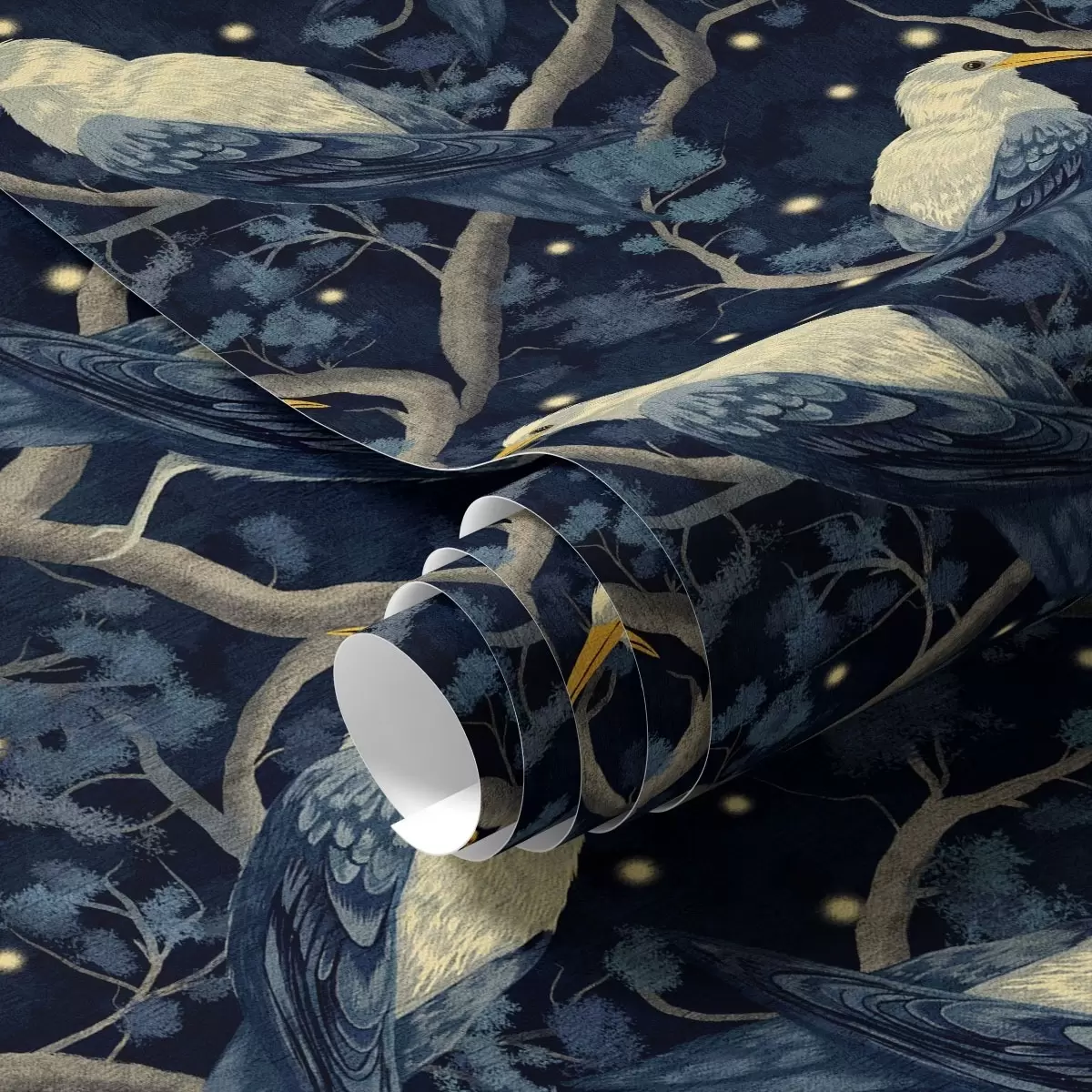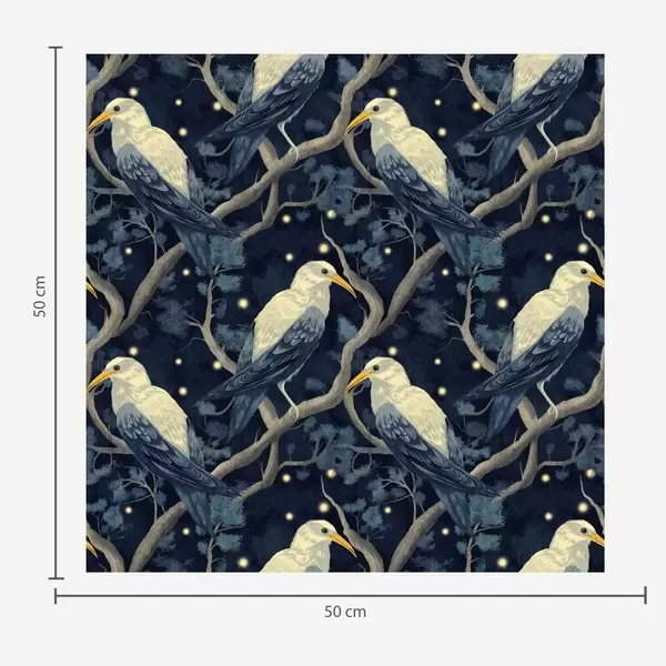 Papel de parede Pássaros brancos nos ramos entre pirilampos brilhantes na floresta nocturna Nr. a00109