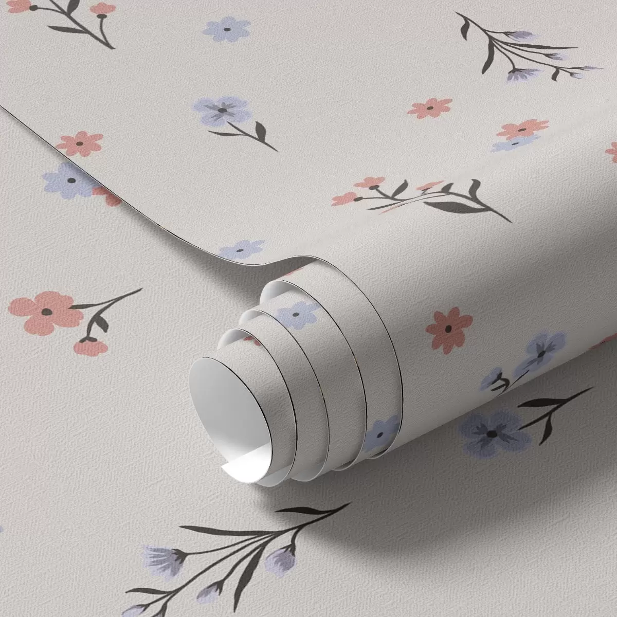 Papel de parede Pequenas flores em tons de rosa pálido e azul sobre um fundo creme Nr. a00110
