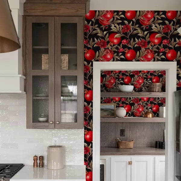 Papel de parede Romãs e flores sobre um fundo escuro em estilo mediterrânico Nr. a00115