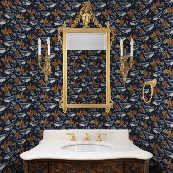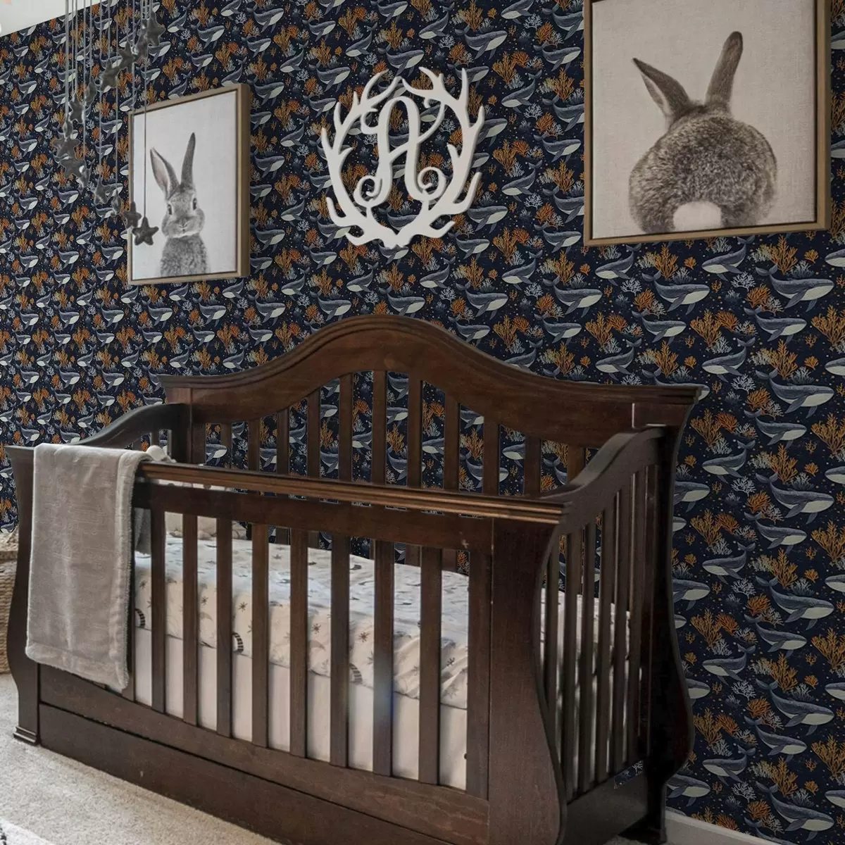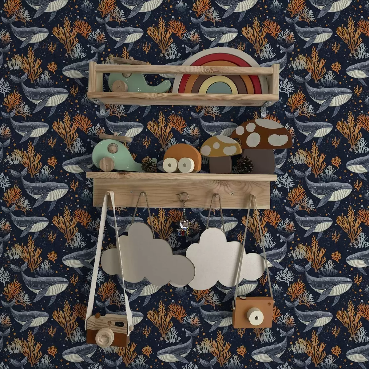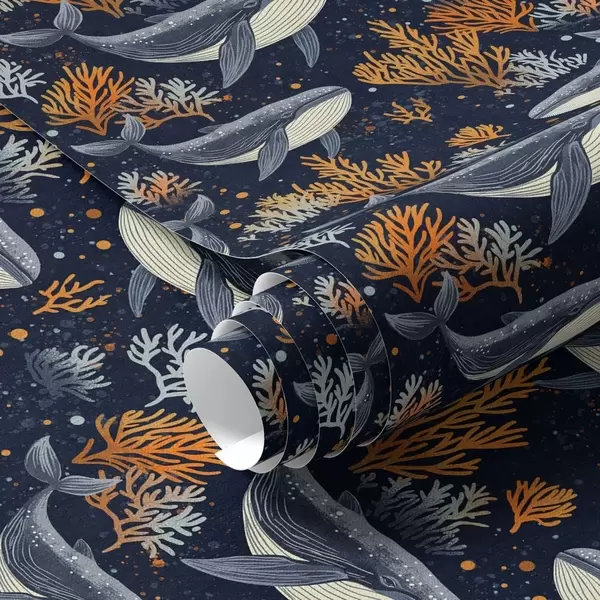 Papel de parede Baleias e corais sobre um fundo escuro Nr. a00116