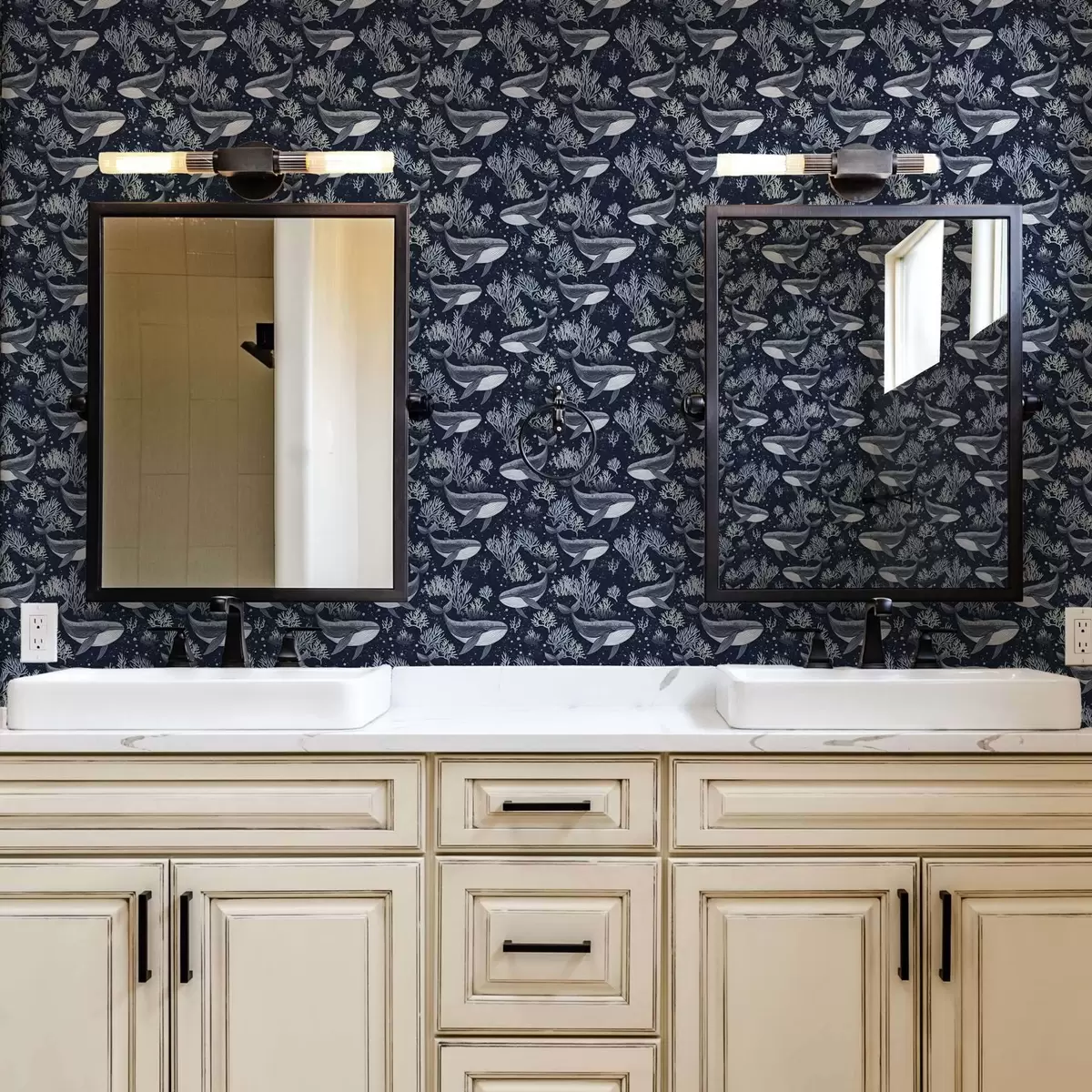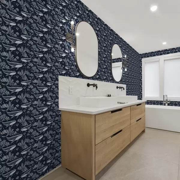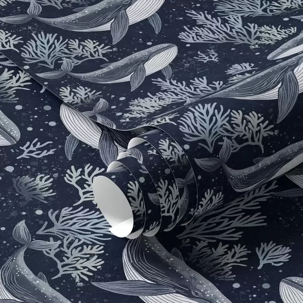 Papel de parede Baleias e corais num fundo azul escuro Nr. a00116v1