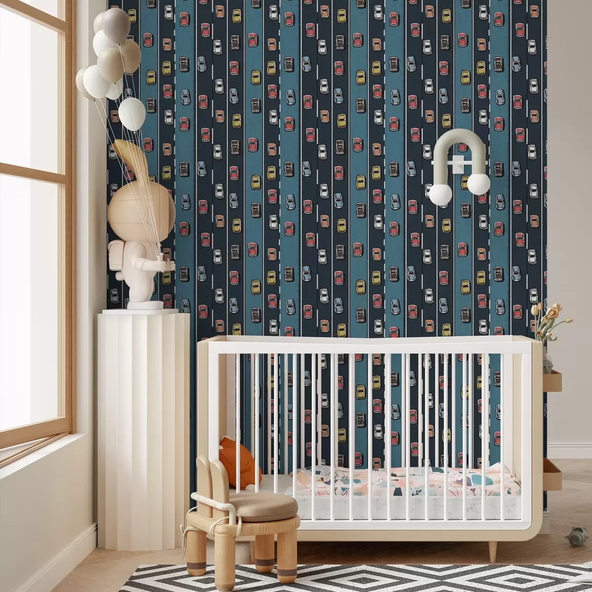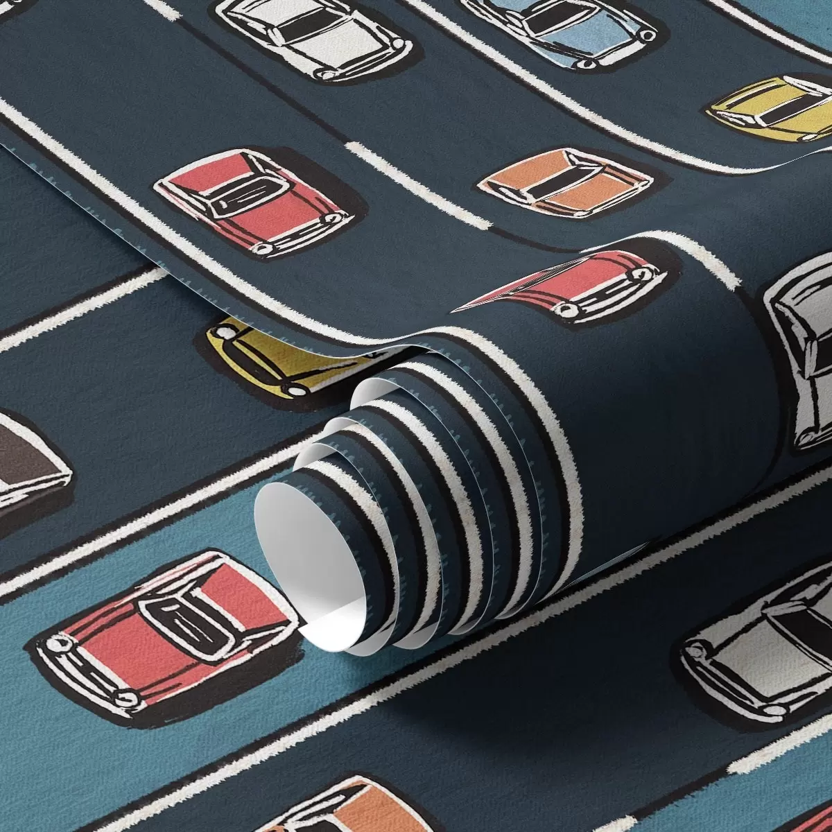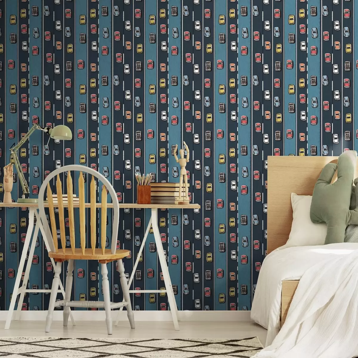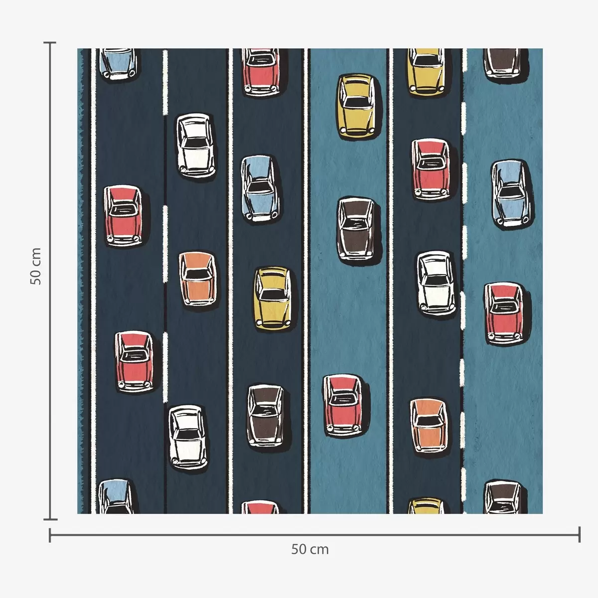 Papel de parede Carro retro numa estrada azul-marinho ao estilo dos anos 60 Nr. a00118
