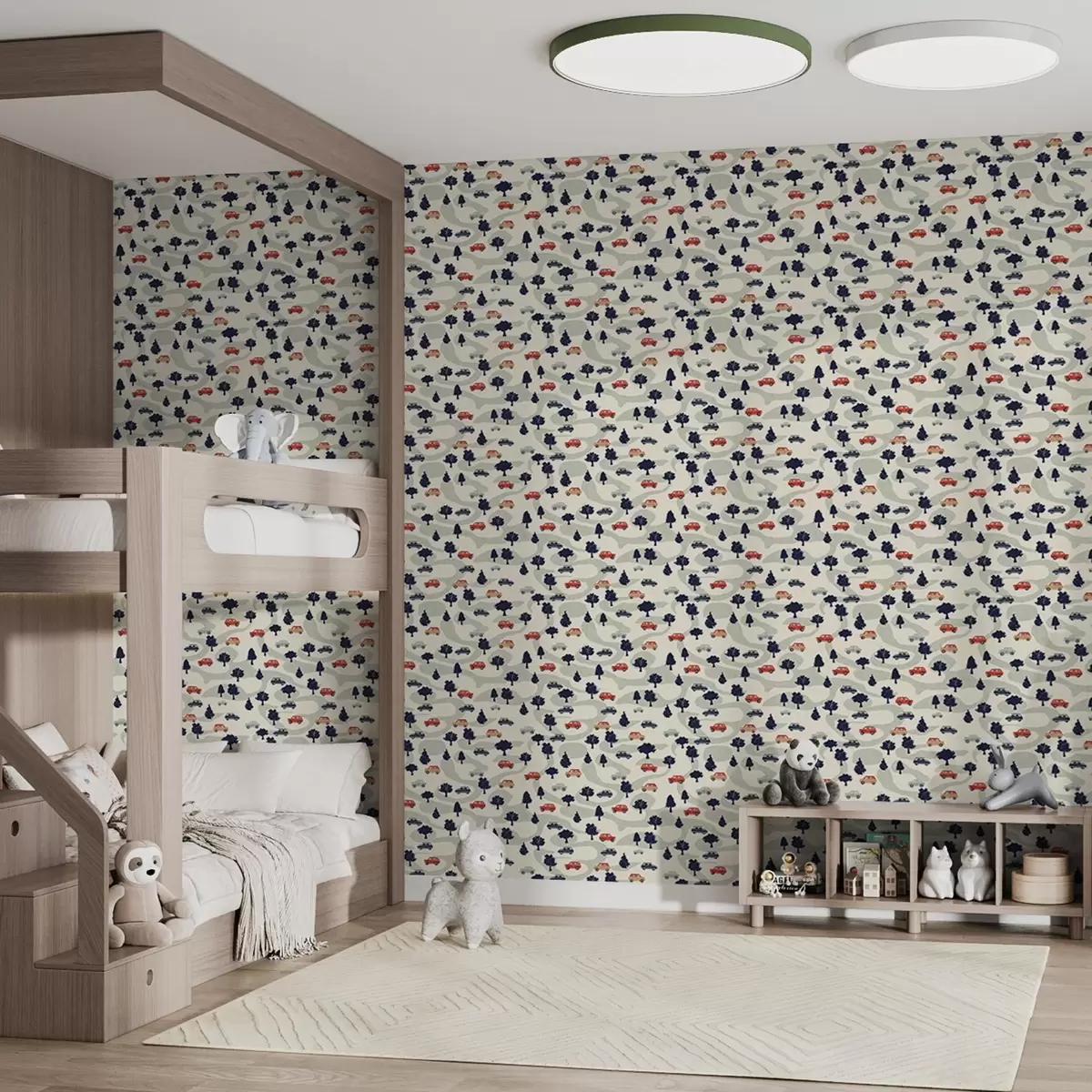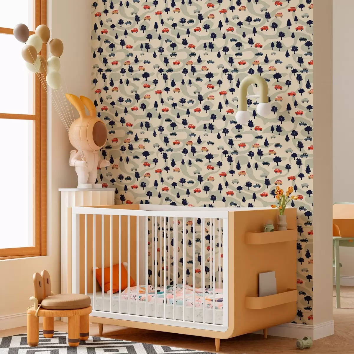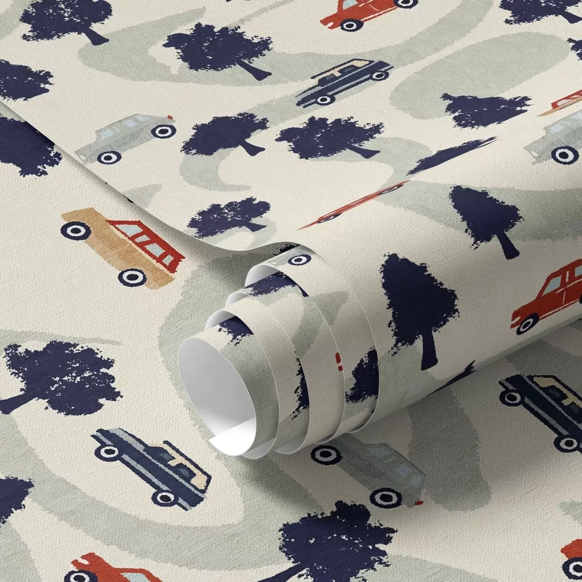 Papel de parede Carros engraçados entre as árvores num fundo creme Nr. a00119