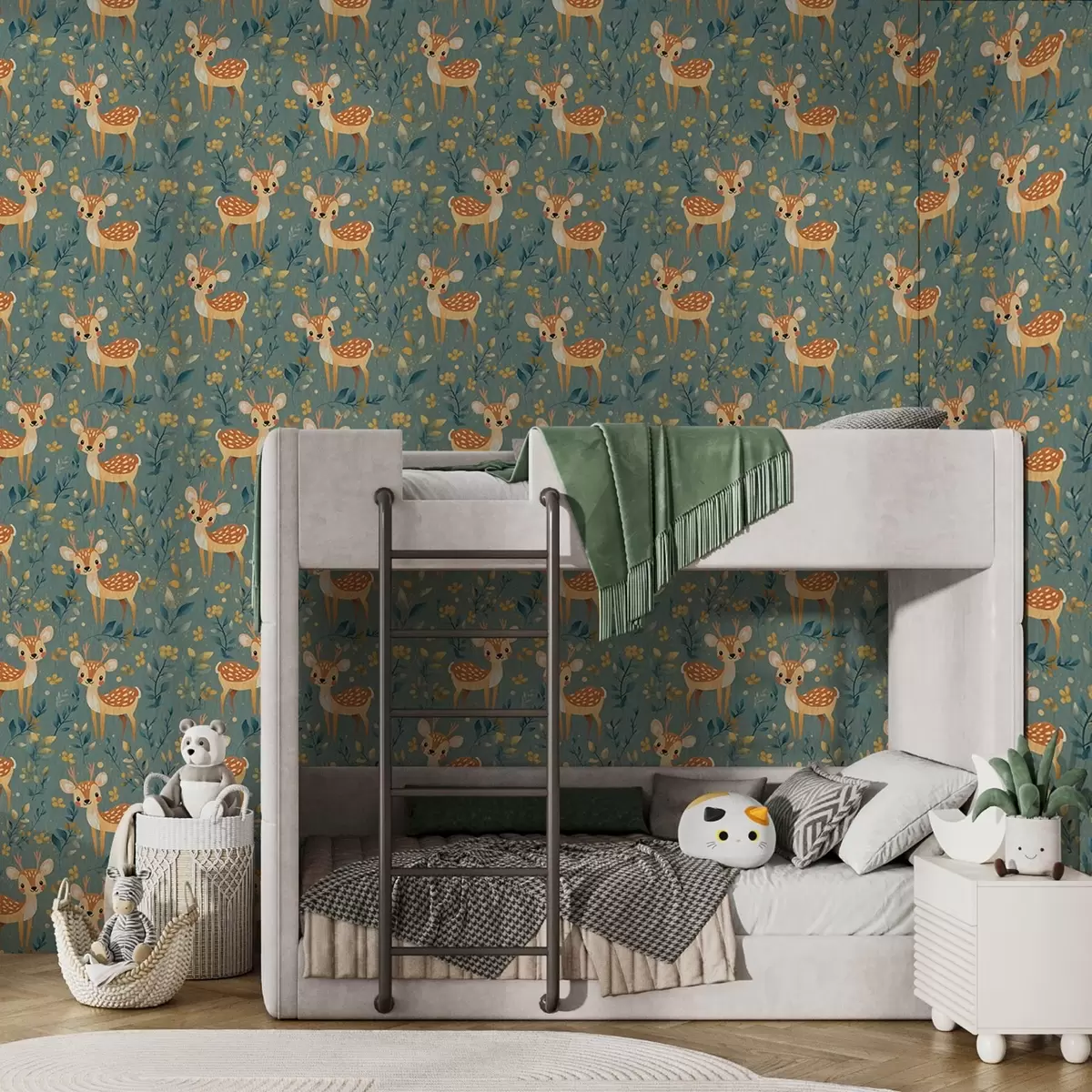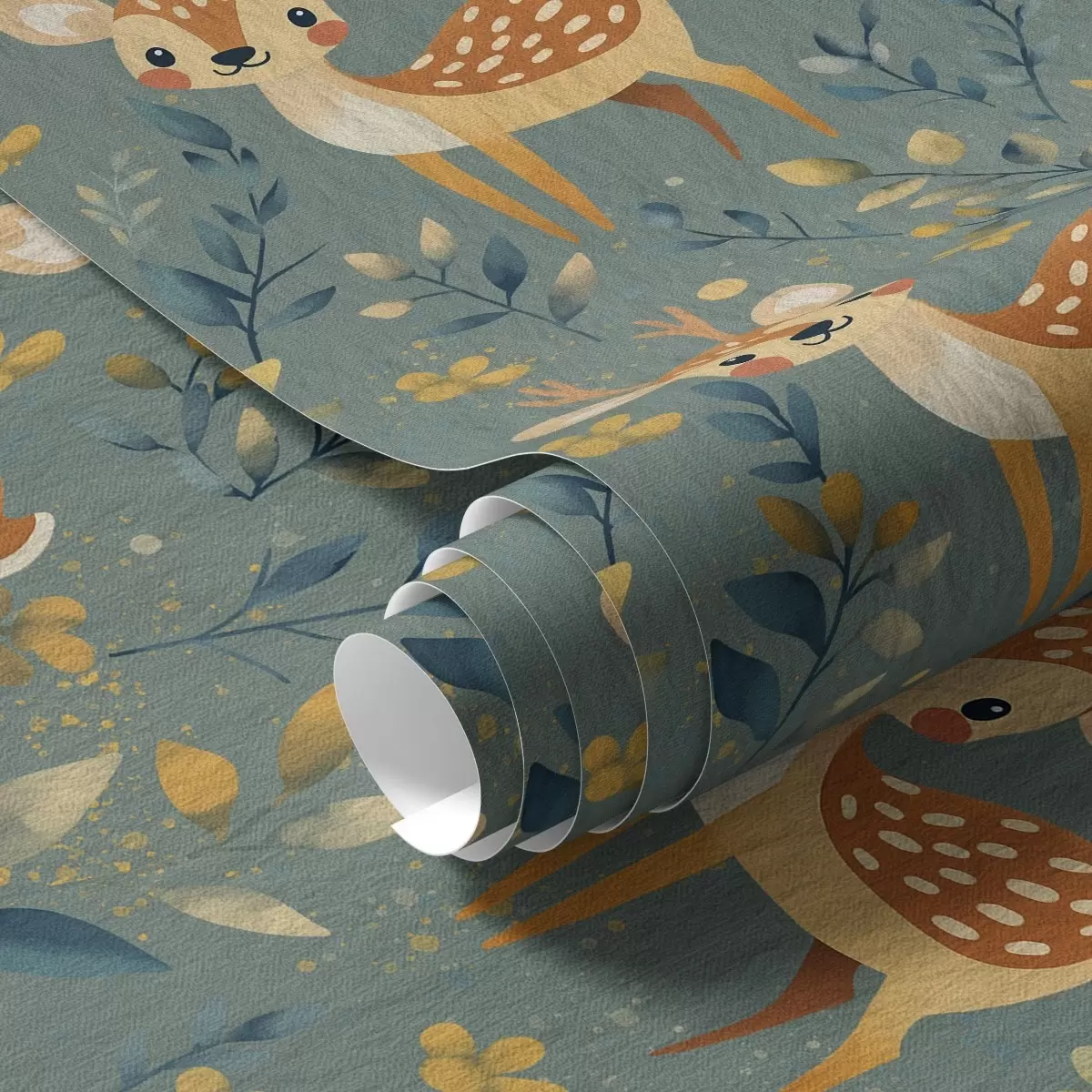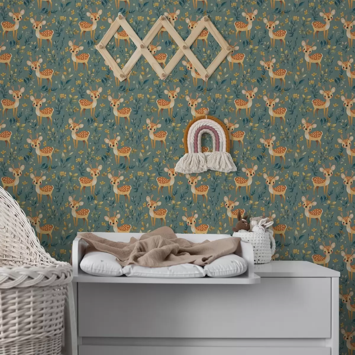Papel de parede Veado bebé na floresta com folhas amarelas Nr. a00124v1