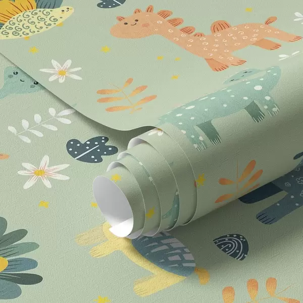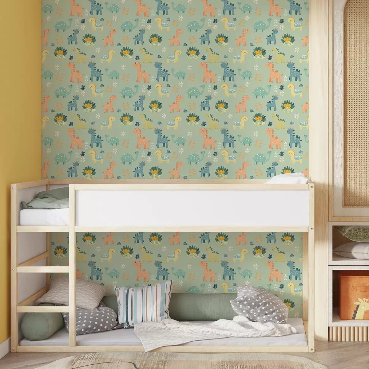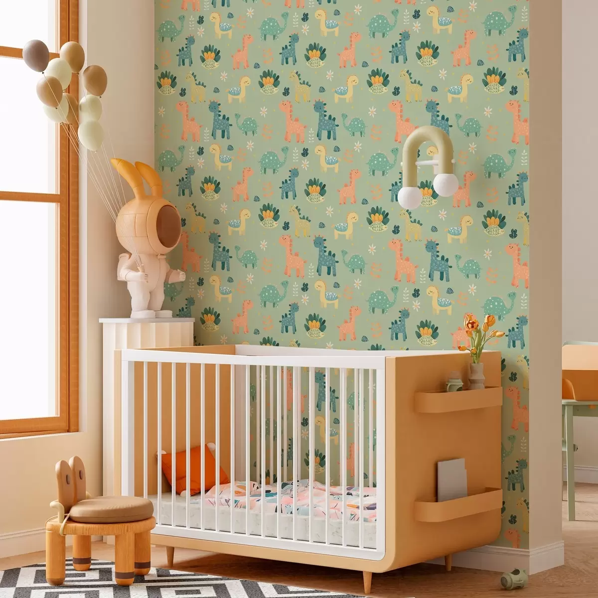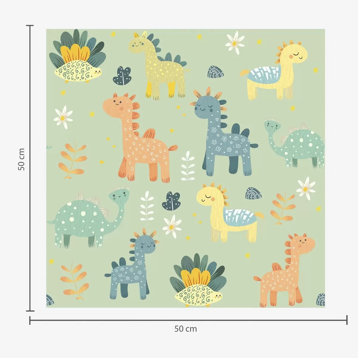Papel de parede Dinossauros divertidos numa paleta verde suave sobre um fundo claro Nr. a00125v1