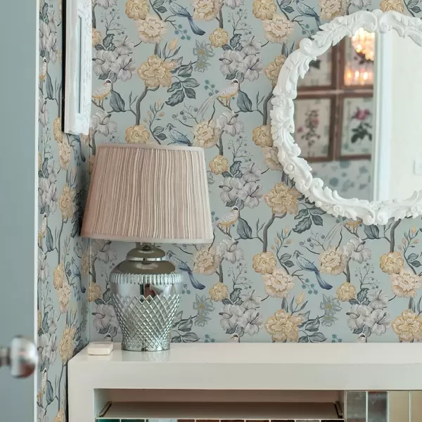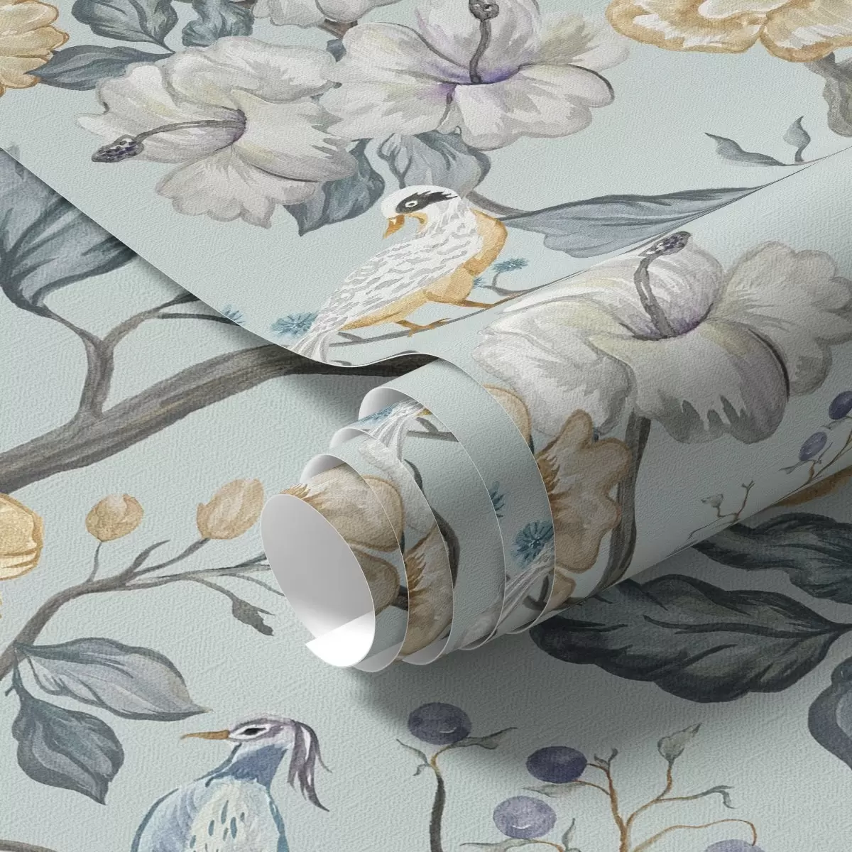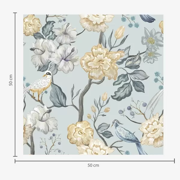 Papel de parede Flores e pássaros sobre fundo azul Nr. a00134