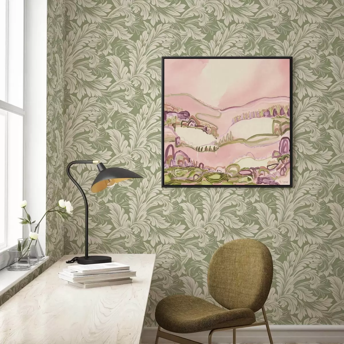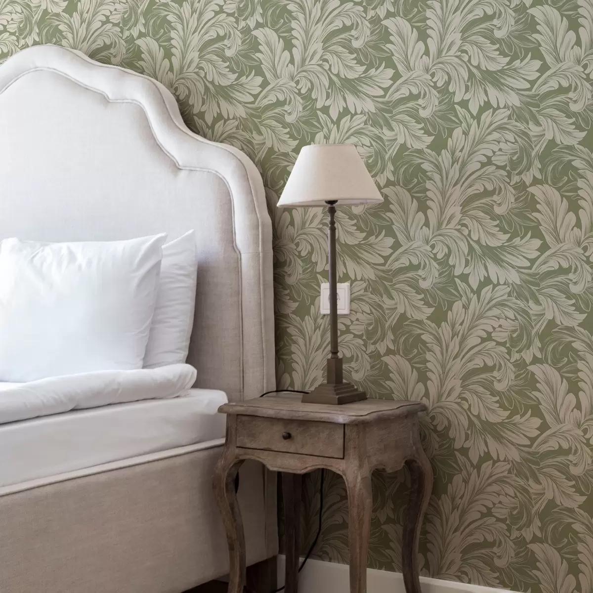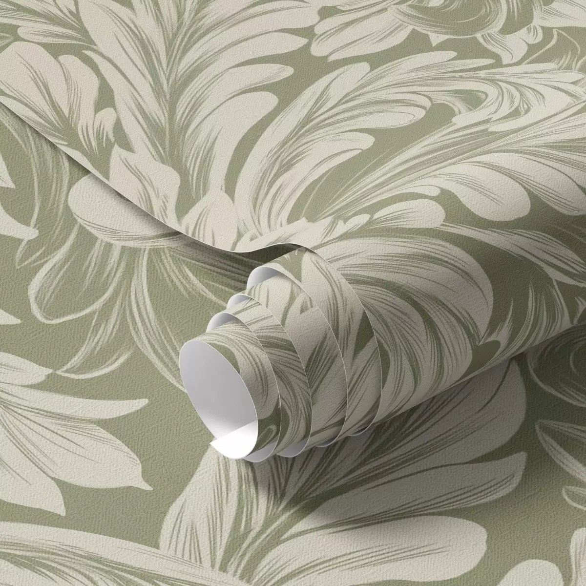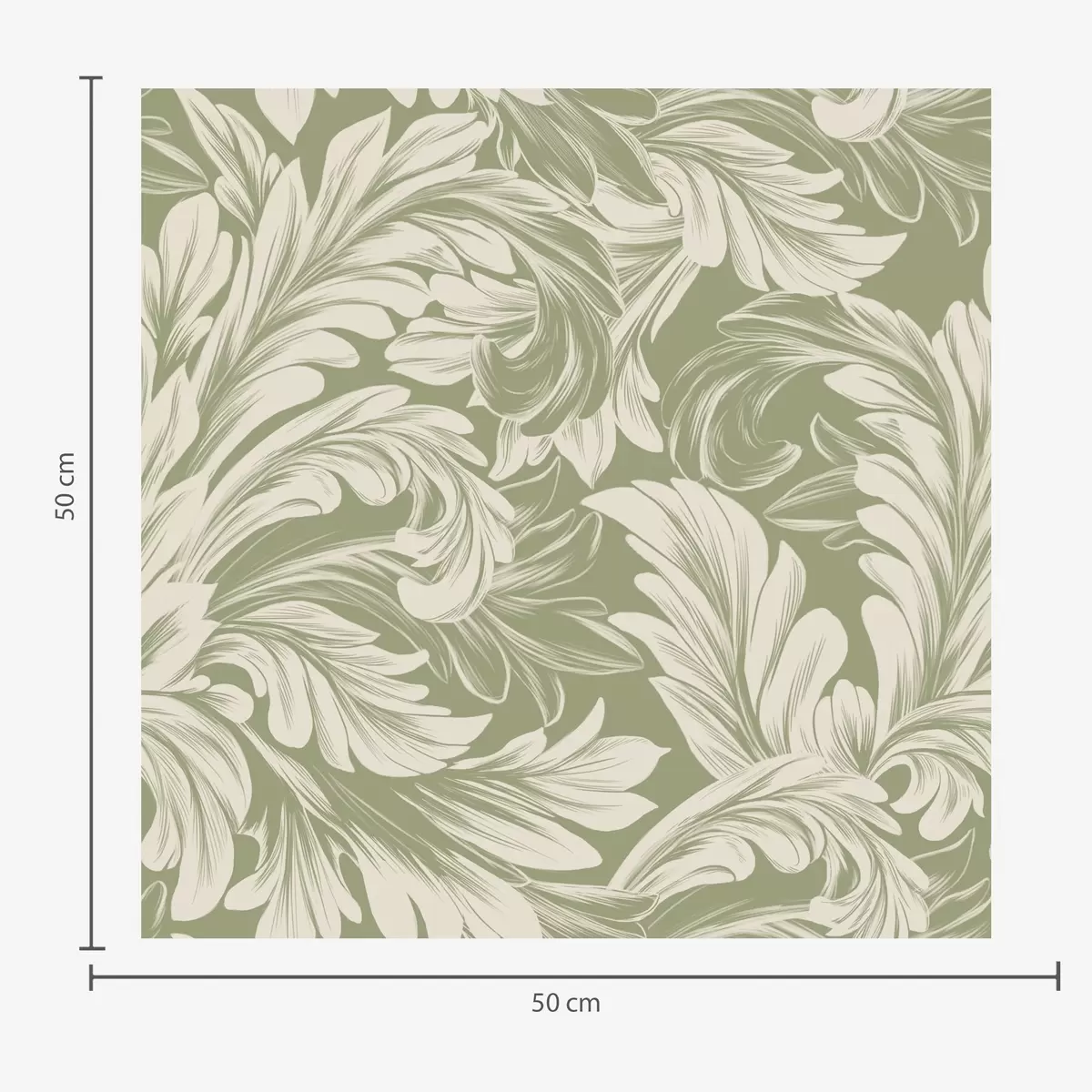 Papel de parede Barroco com folhas creme sobre fundo verde Nr. a00135