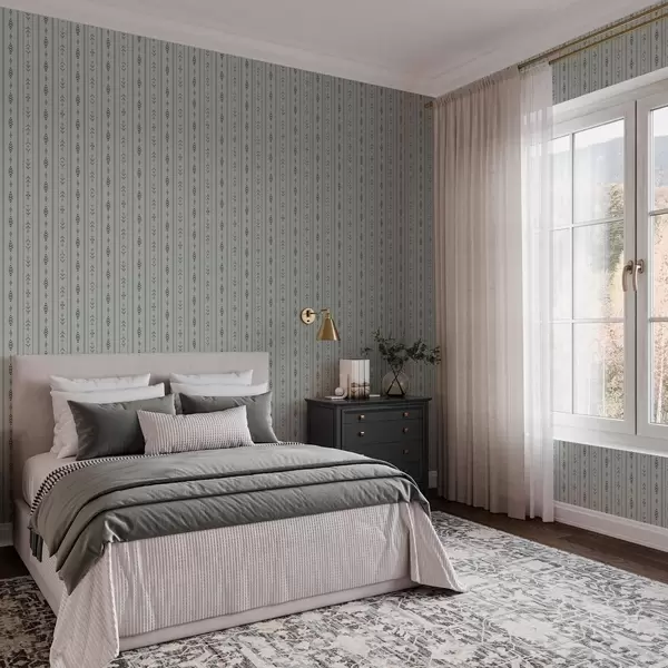 Papel de parede Motivo étnico com motivos em tons de cinzento e menta Nr. a00138