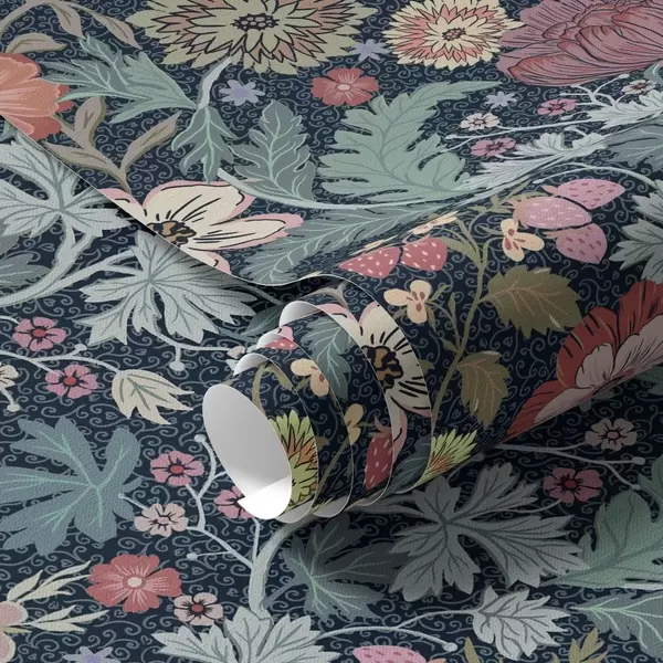 Papel de parede Padrão floral em borgonha e verde Nr. a00145v5