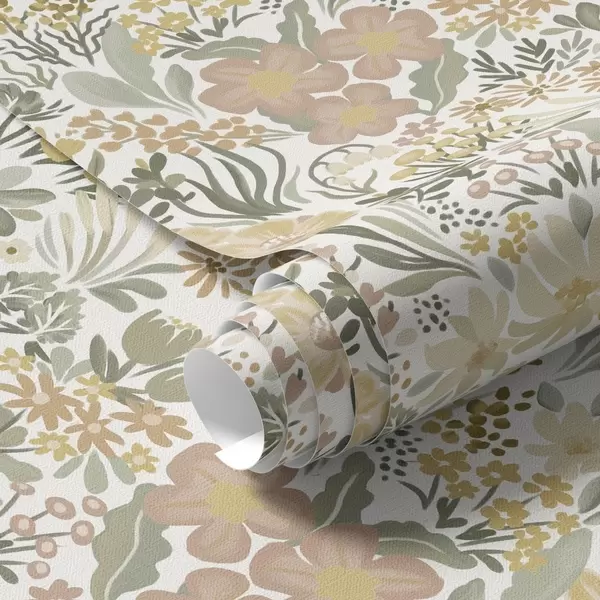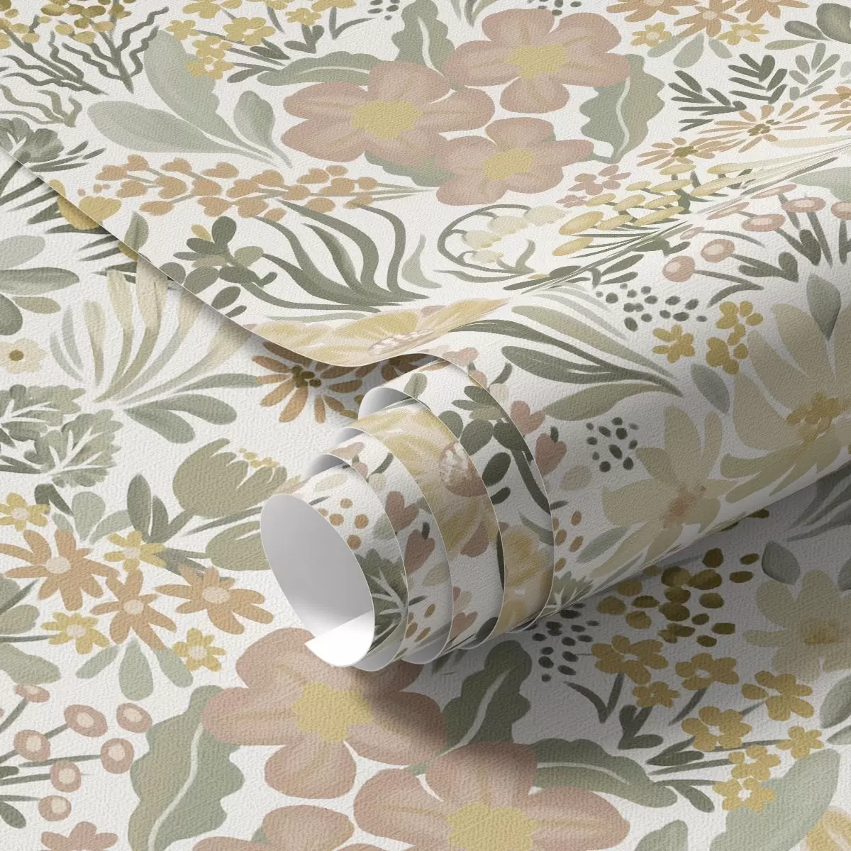 Papel de parede Flores silvestres em aguarela sobre um fundo creme Nr. a00154
