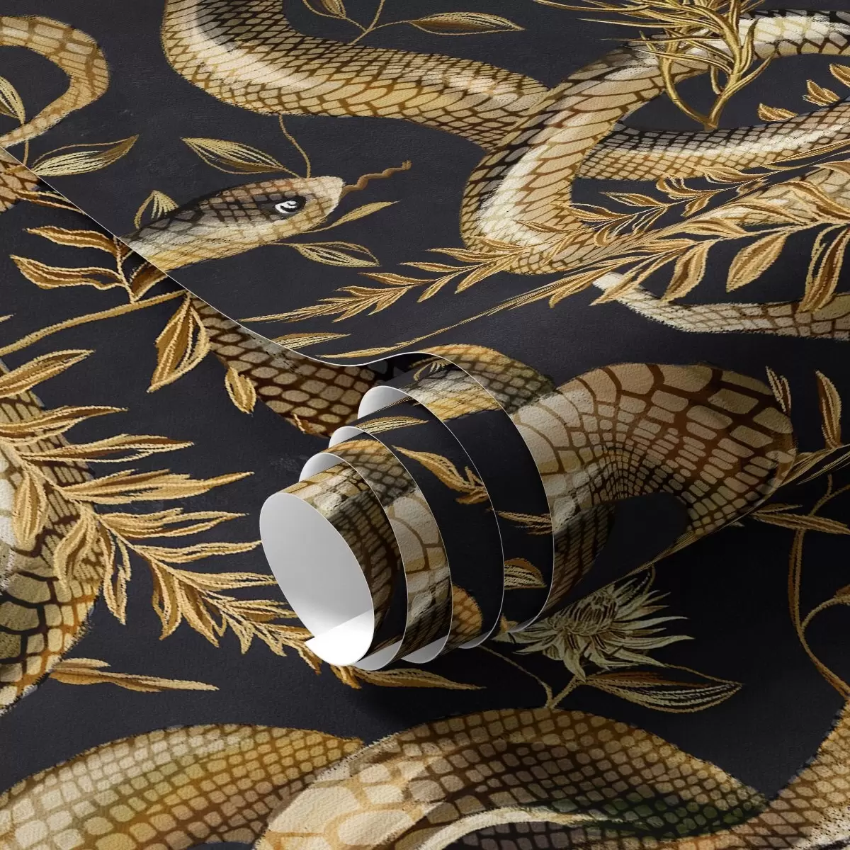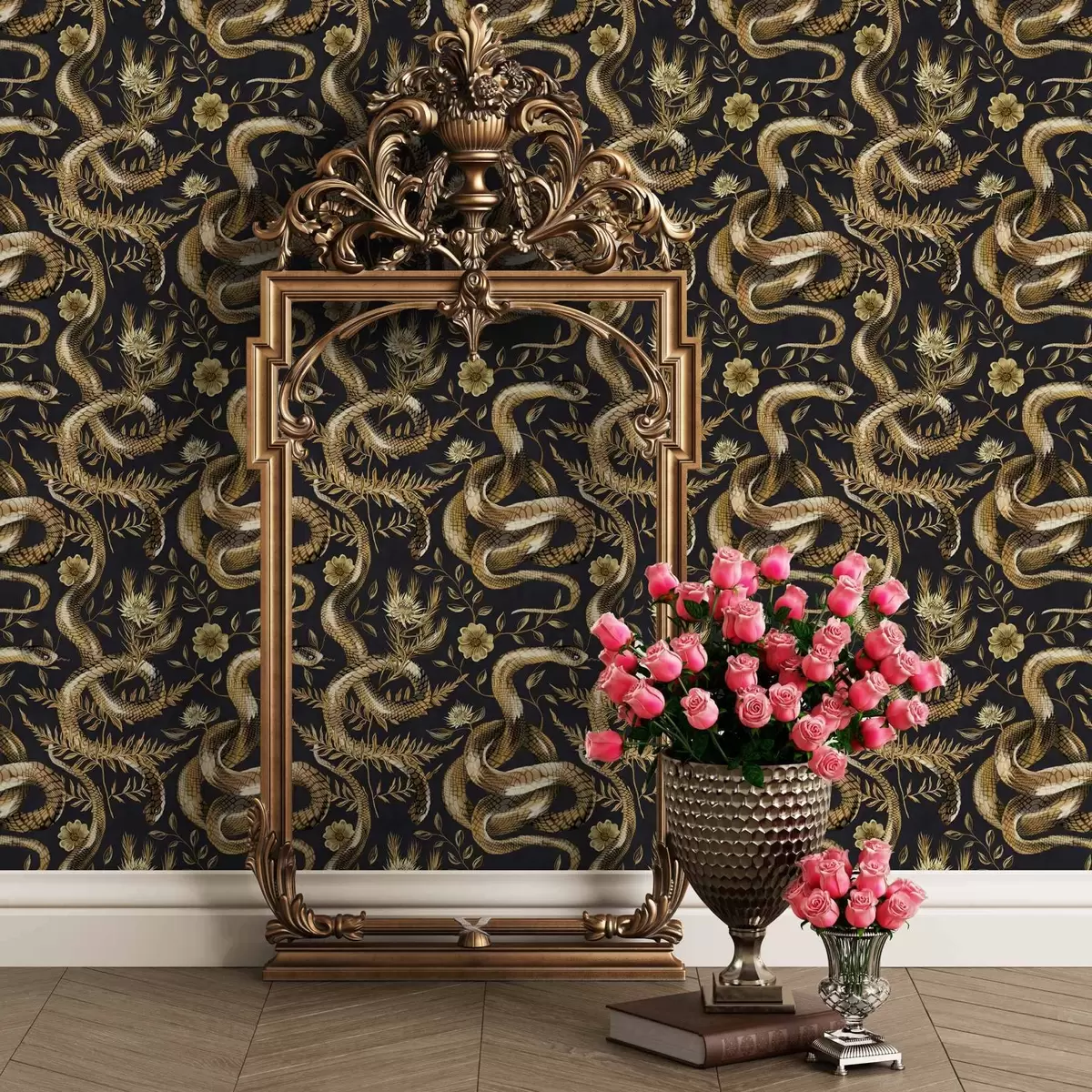 Papel de parede Cobras e flores sobre um fundo escuro Nr. a00158