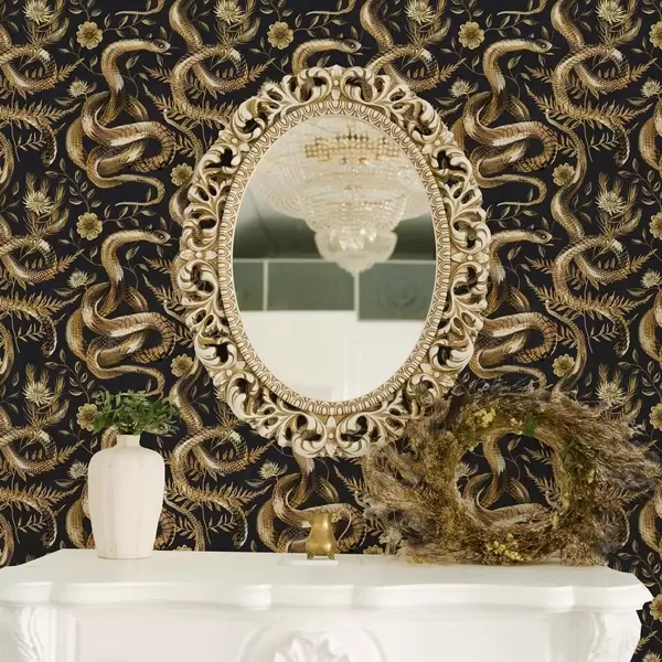 Papel de parede Cobras e flores sobre um fundo escuro Nr. a00158