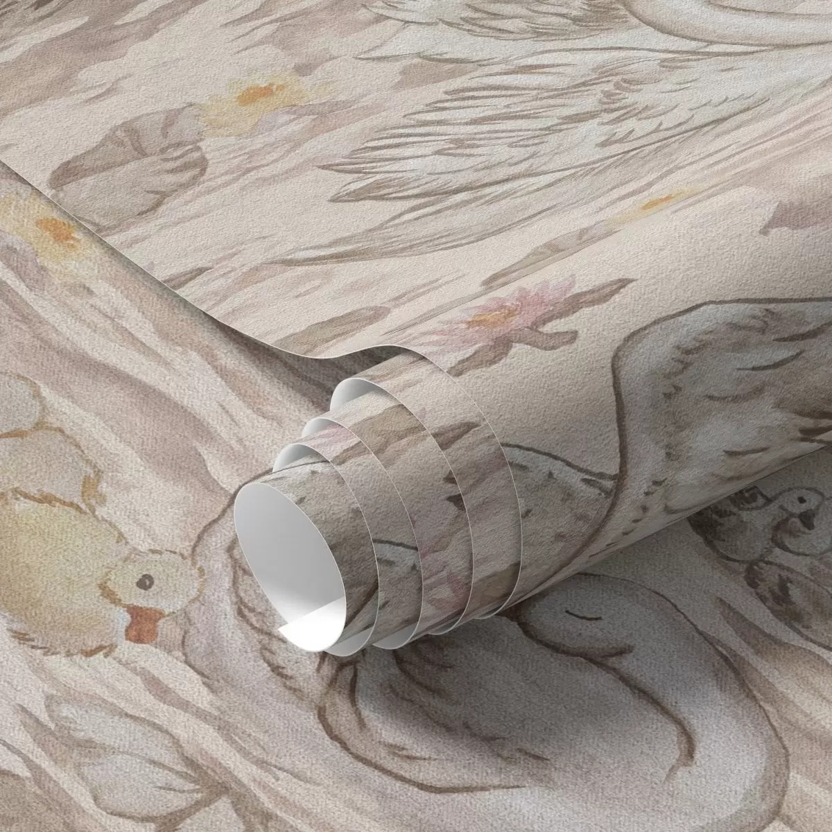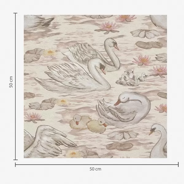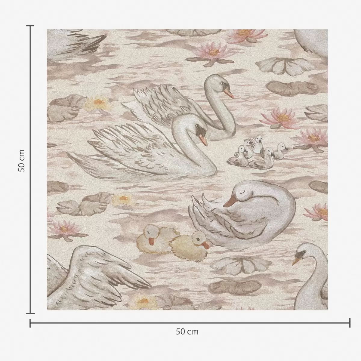 Papel de parede Cisnes com pintos num fundo cor-de-rosa com nenúfares Nr. a00176