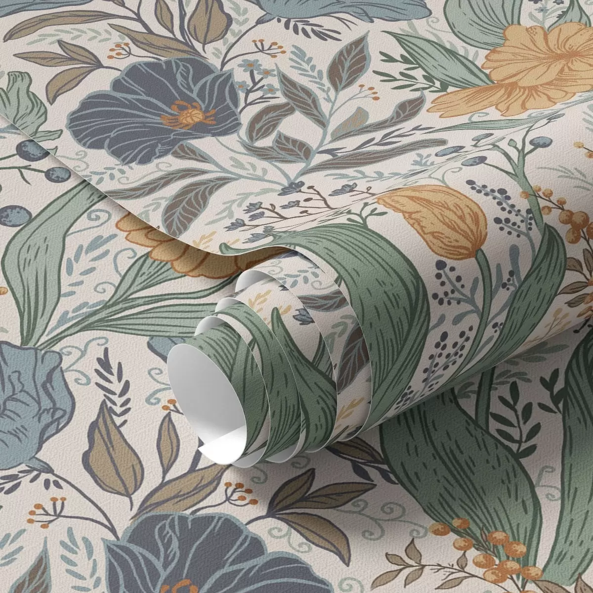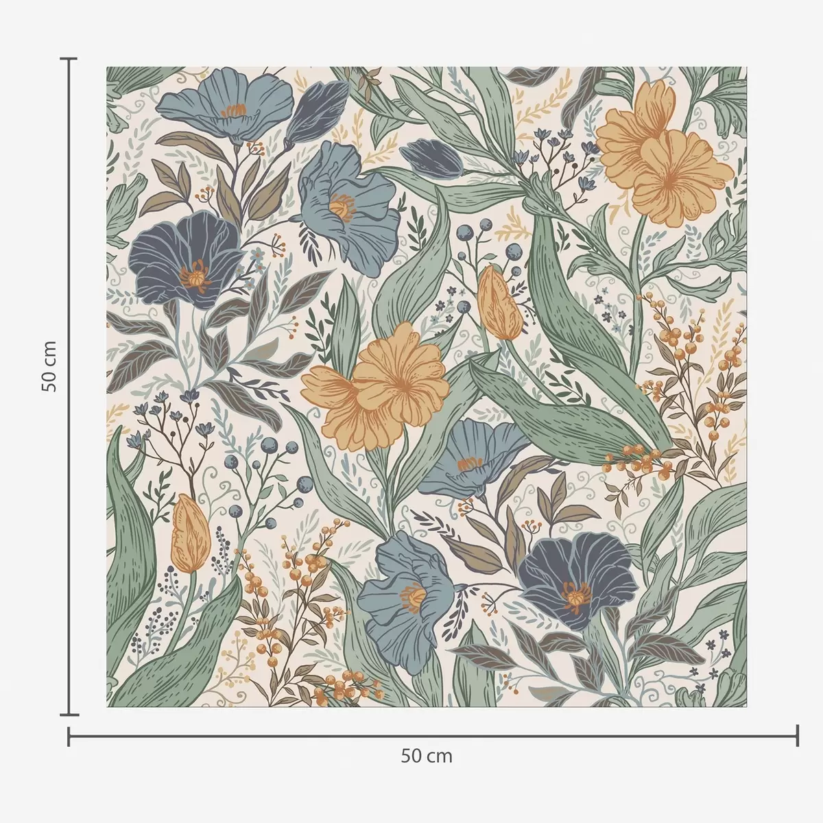 Papel de parede Ilustração desenhada à mão de flores do prado em cores quentes Nr. a00180