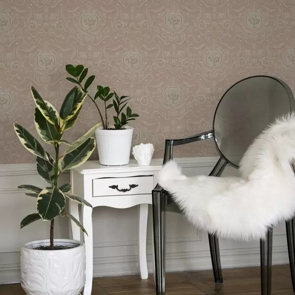 Papel de parede Padrão clássico cor-de-rosa com medalhões e flores Nr. a00185