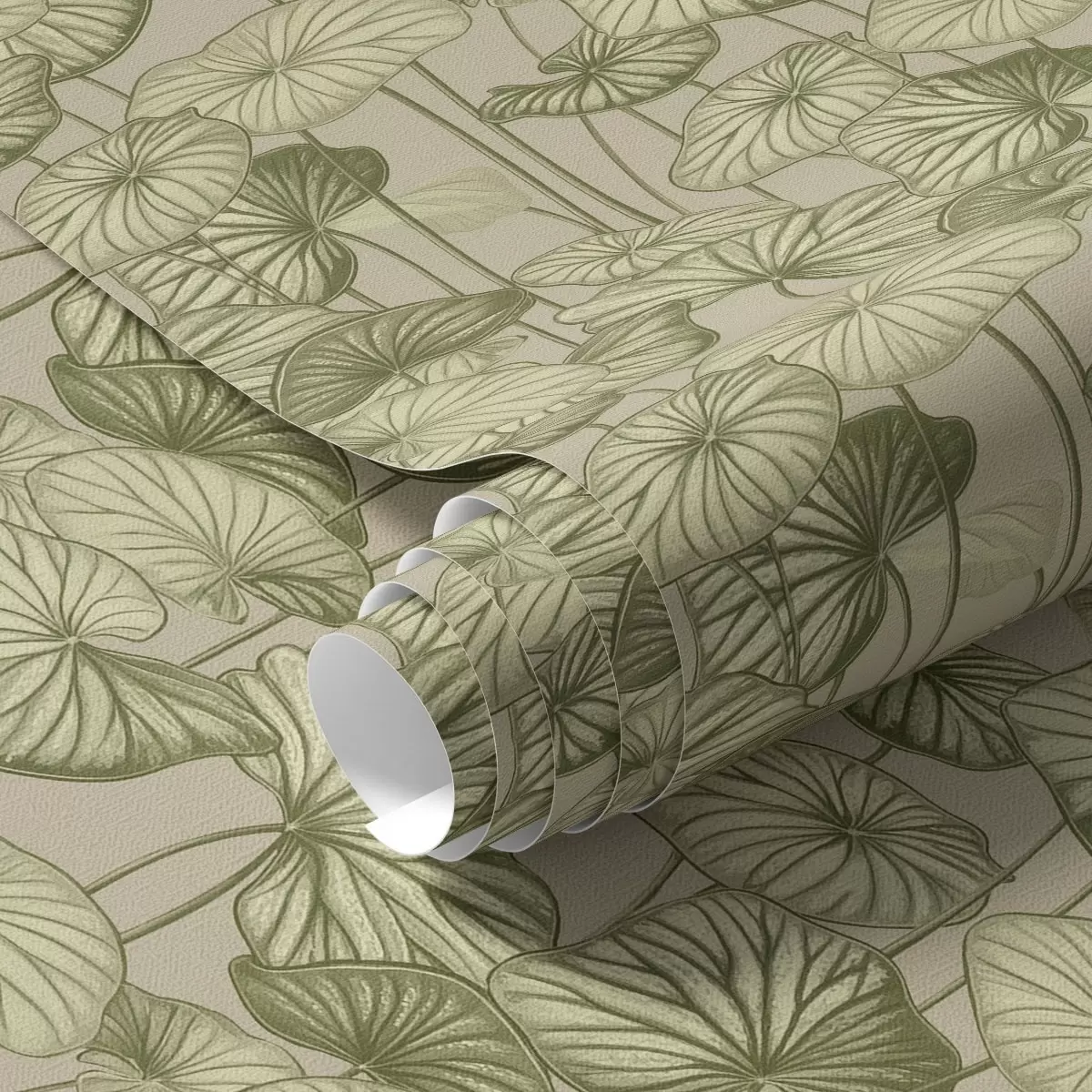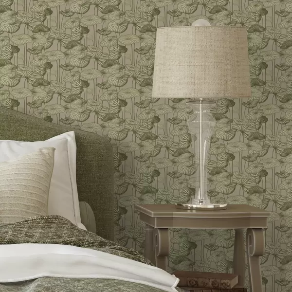 Papel de parede Folhas de lótus gráficas em estilo retro sobre um fundo bege Nr. a00188