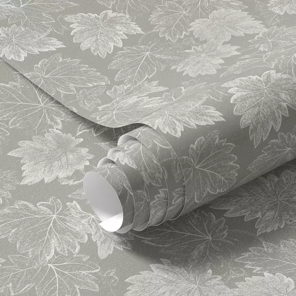 Papel de parede Folhas de ácer gráficas em esquema de cores prateadas sobre fundo cinzento Nr. a00196