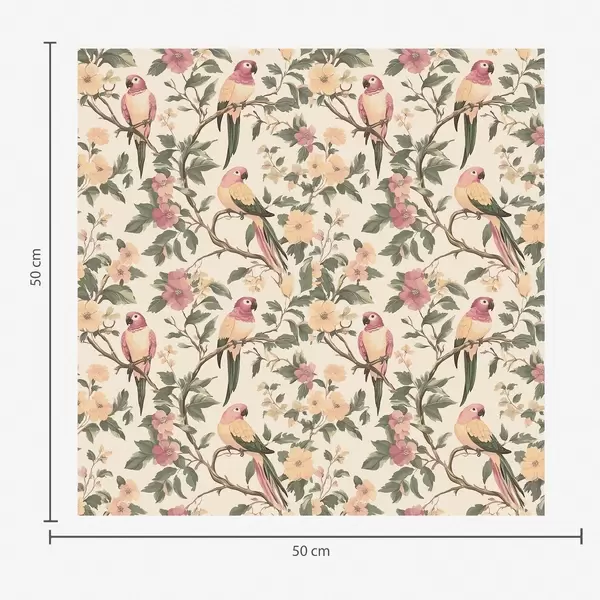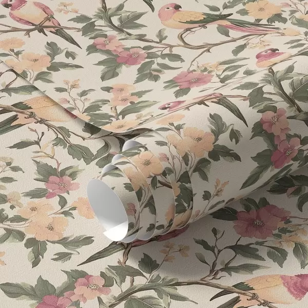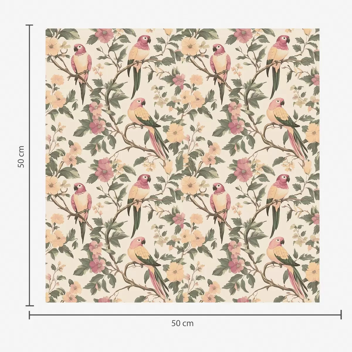 Papel de parede Aves tropicais em ramos floridos em tons pastel Nr. a00199
