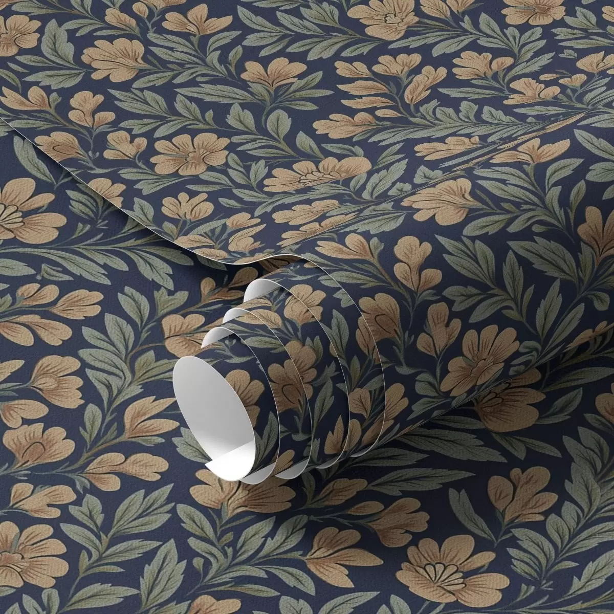 Papel de parede Flores cor de laranja sobre um fundo azul escuro em estilo vintage Nr. a00200