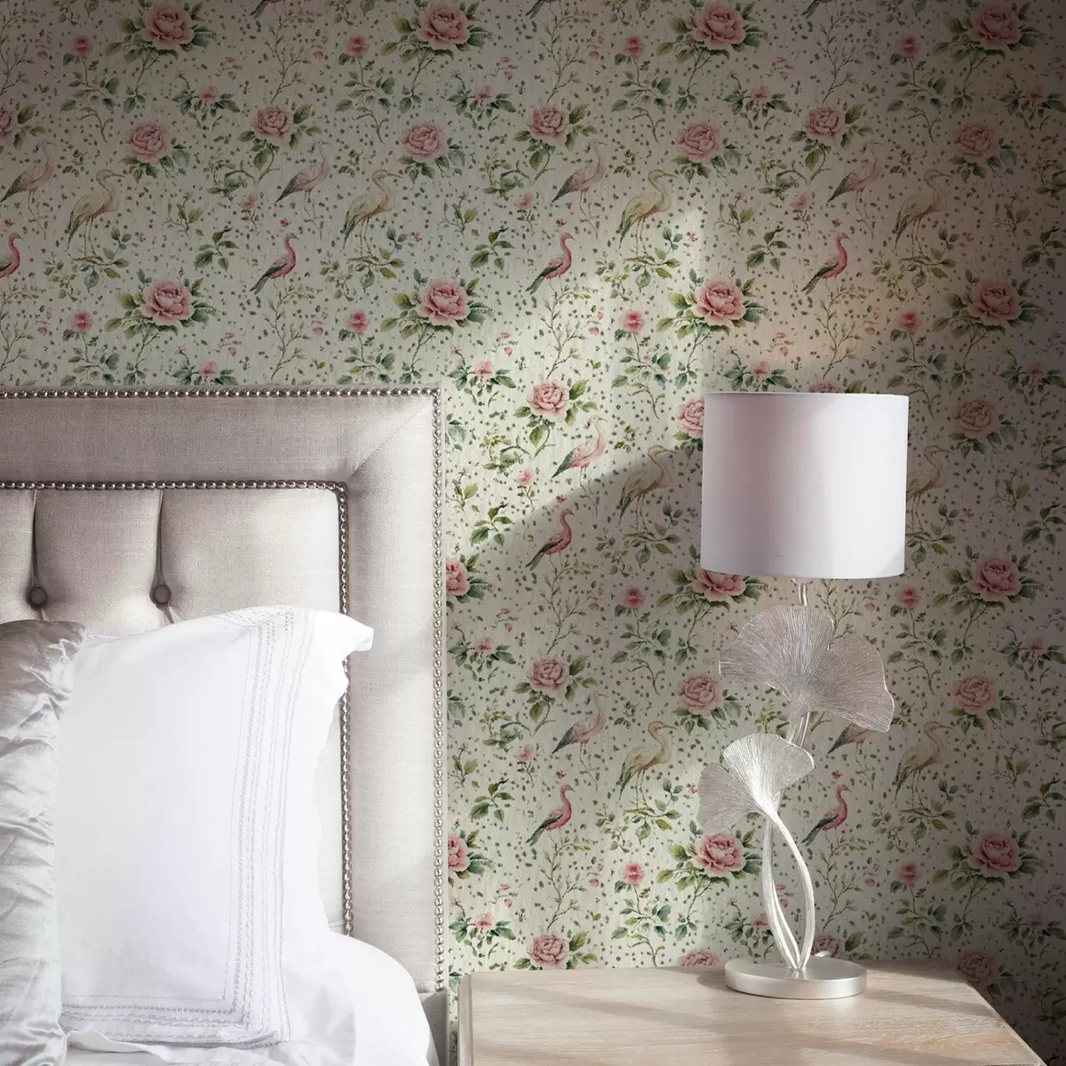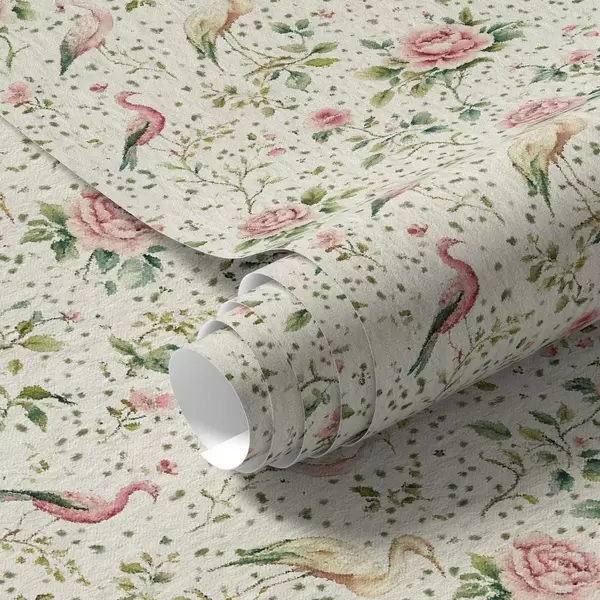 Papel de parede Rosas cor-de-rosa pastel e pássaros em estilo shabby chic Nr. a00201
