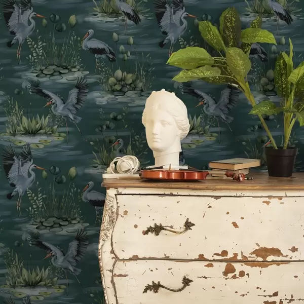 Papel de parede Cenas com garças sobre o fundo de lagos e nenúfares Nr. a00202