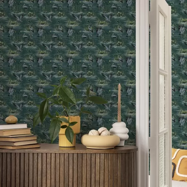 Papel de parede Cenas com garças sobre o fundo de lagos e nenúfares Nr. a00202
