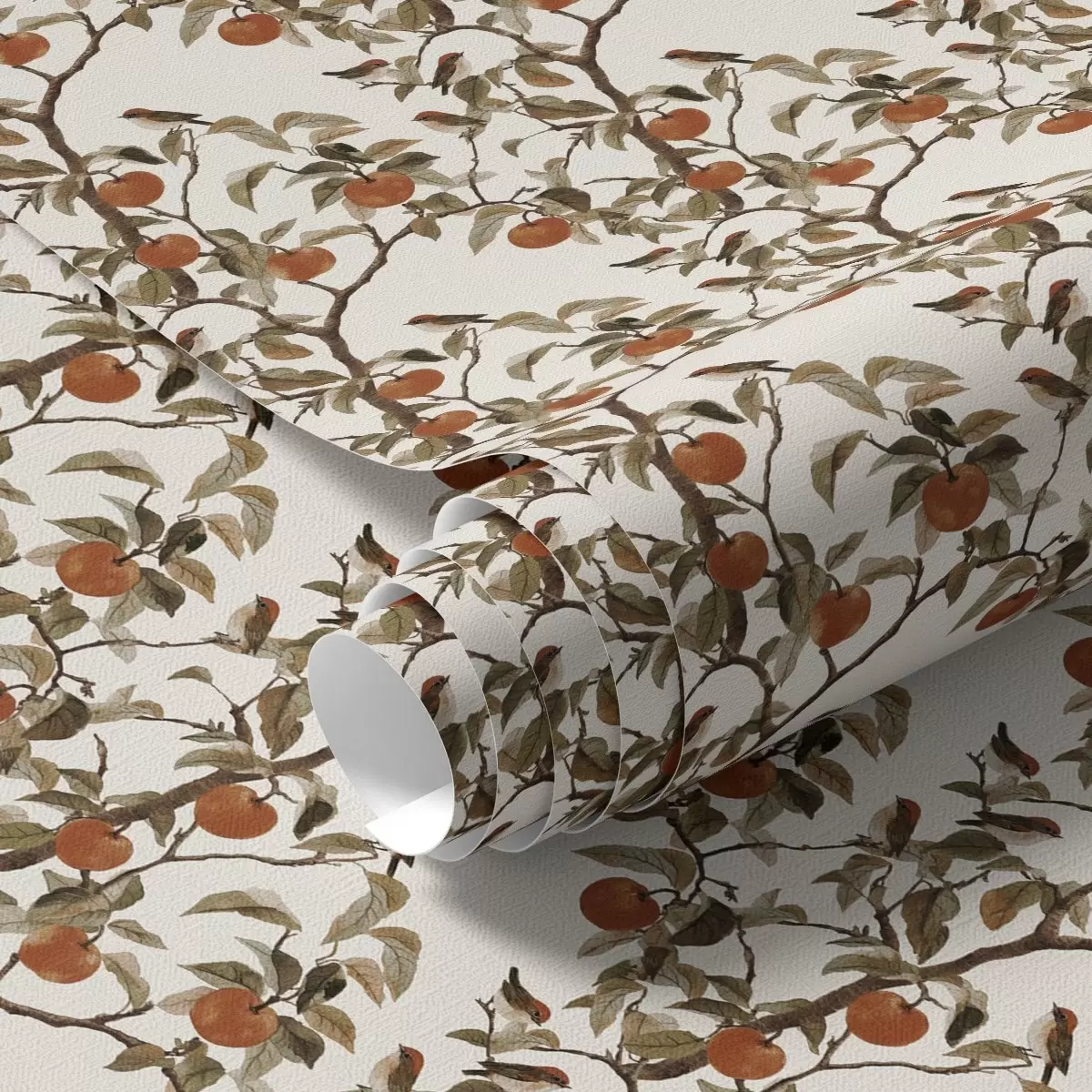 Papel de parede Pássaros e laranjas em ramos, botânica vintage Nr. a00208