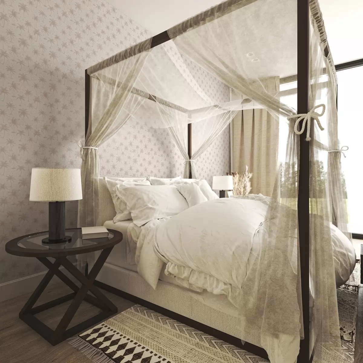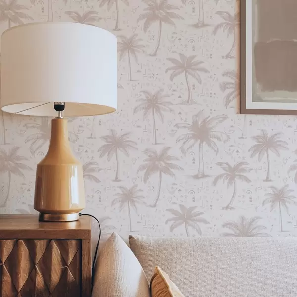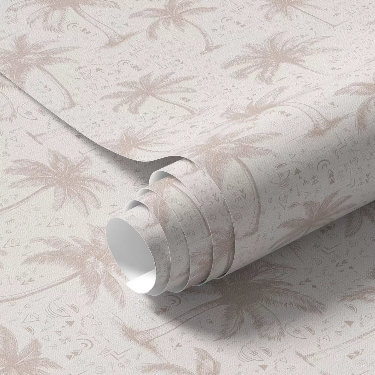 Papel de parede Palmeiras com símbolos étnicos, tom rosa pastel Nr. a00213