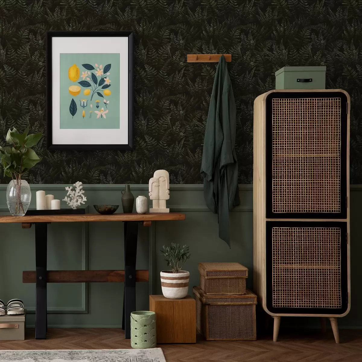 Papel de parede Feto escuro, ornamento de floresta, cores nocturnas Nr. a00214
