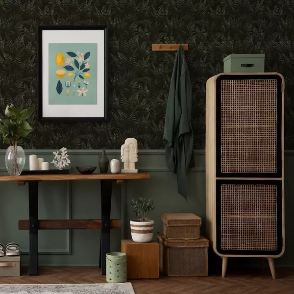 Papel de parede Feto escuro, ornamento de floresta, cores nocturnas Nr. a00214