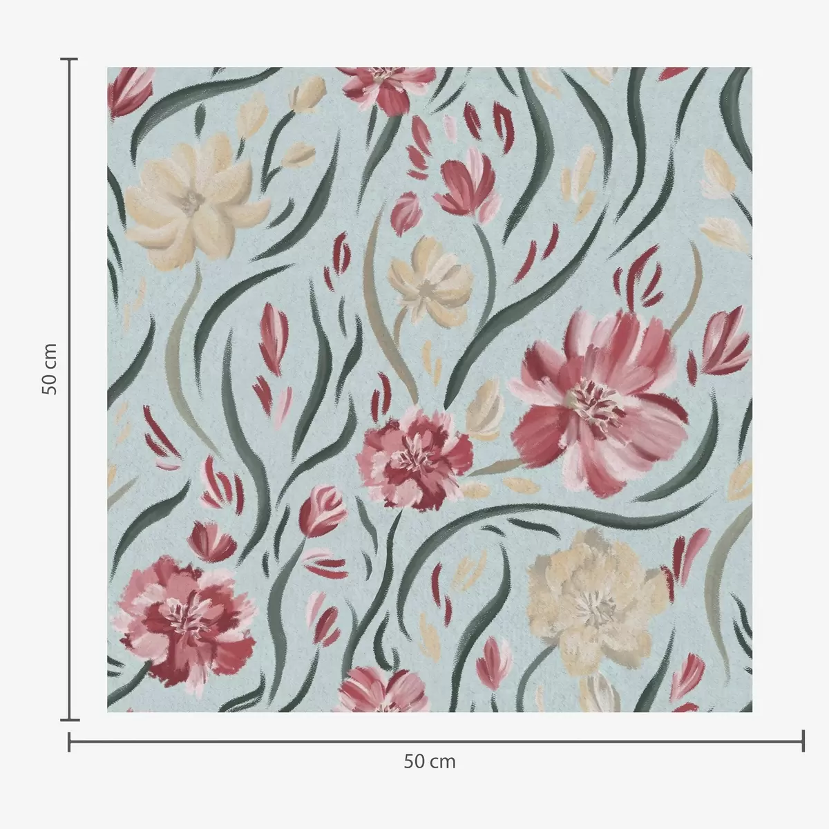 Impresso sob encomenda e entregue em rolos de até 50 cm de largura.