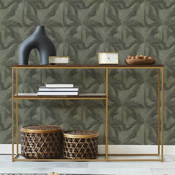 Papel de parede Folhas de palmeira sobre fundo de oliveira, selva, trópicos Nr. a00217