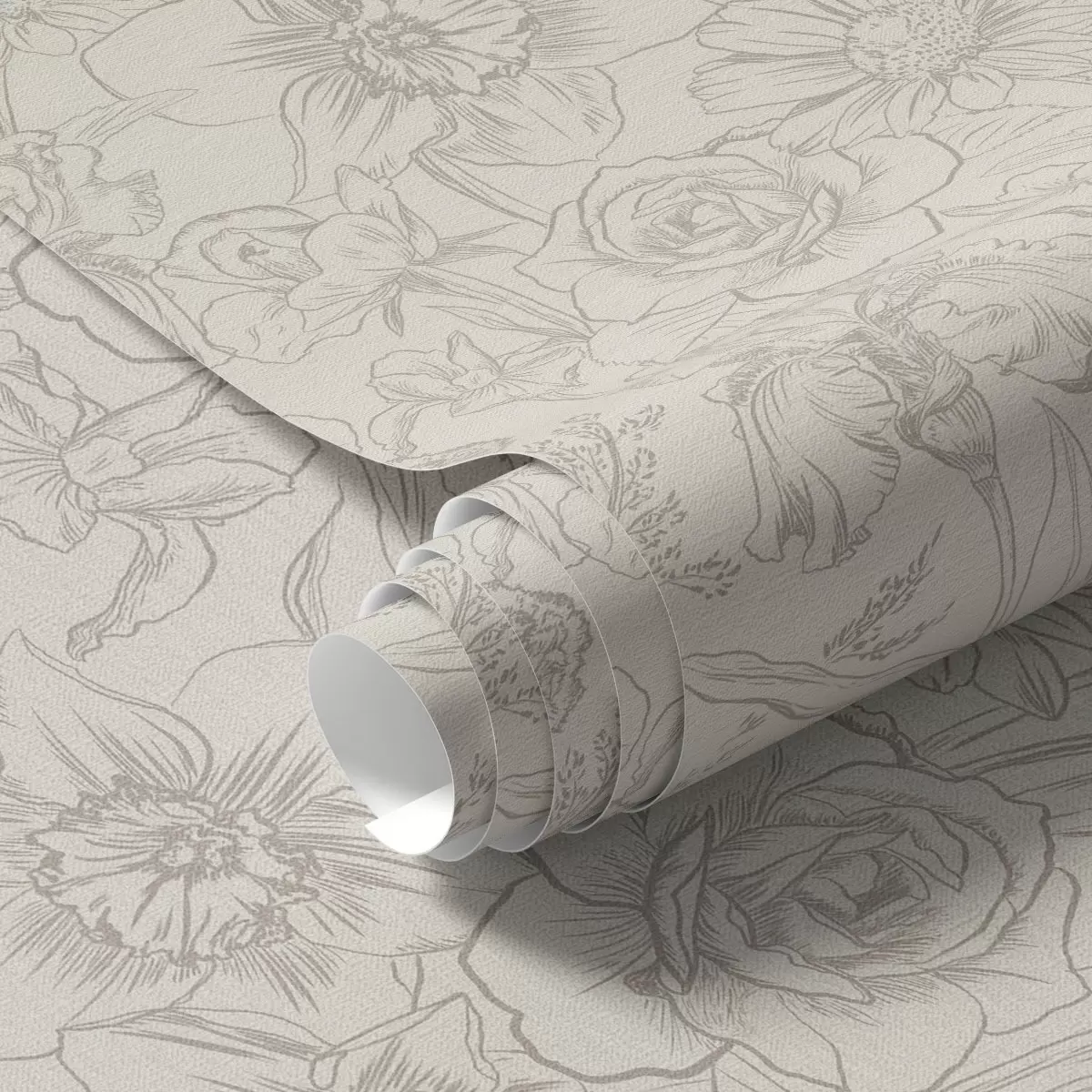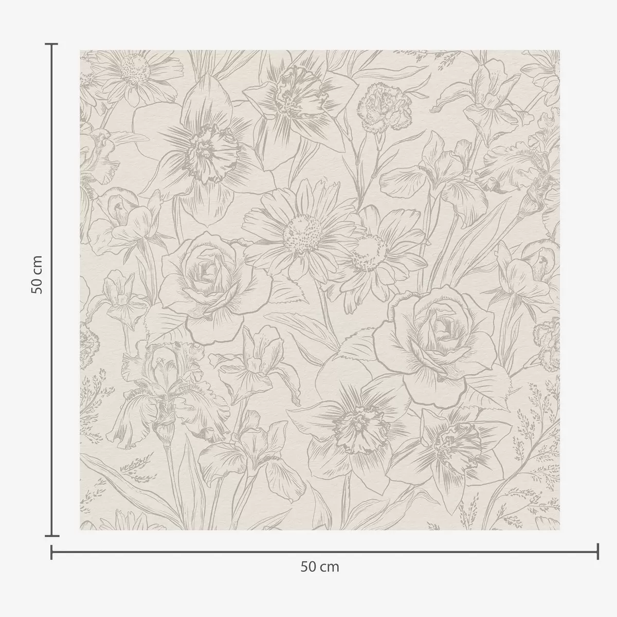 Papel de parede Flores de contorno sobre um fundo creme, padrão floral delicado Nr. a00218