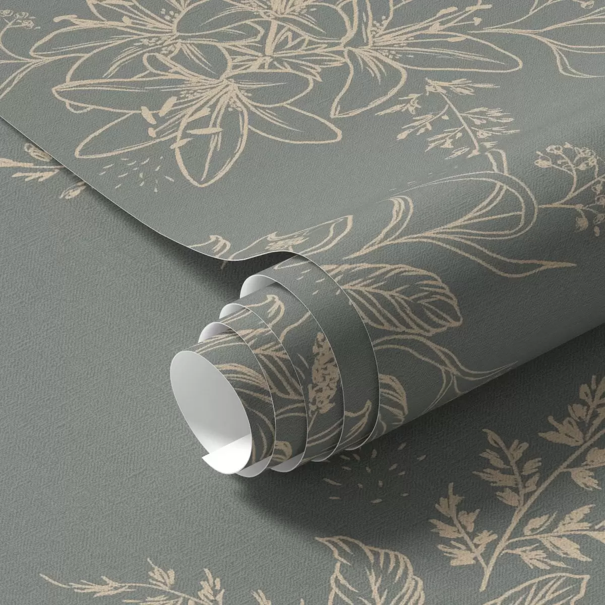 Papel de parede Flores de contorno sobre fundo cinzento-azulado, padrão botânico elegante Nr. a00226