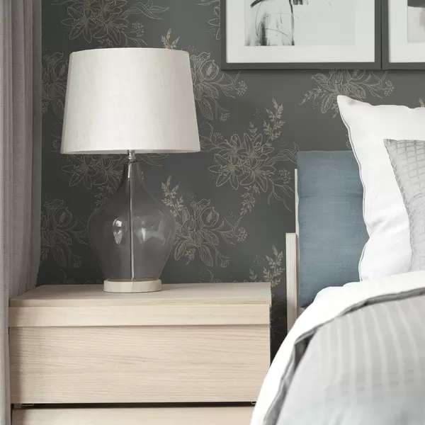Papel de parede Flores de contorno sobre fundo cinzento-azulado, padrão botânico elegante Nr. a00226